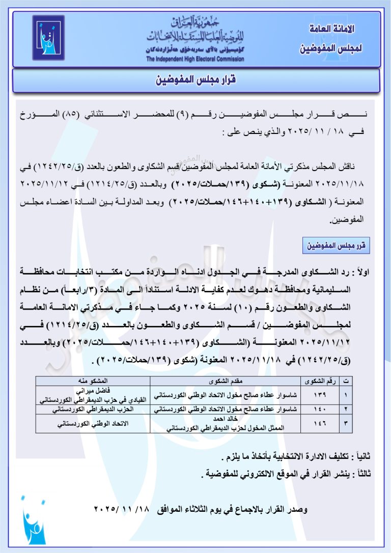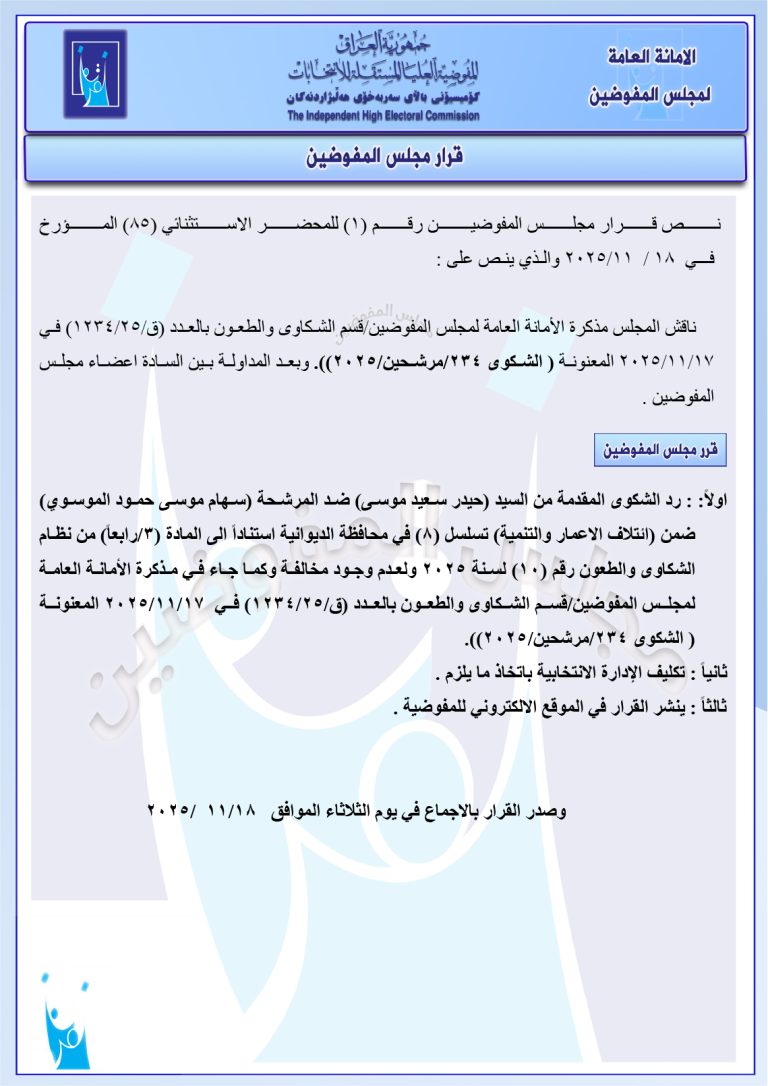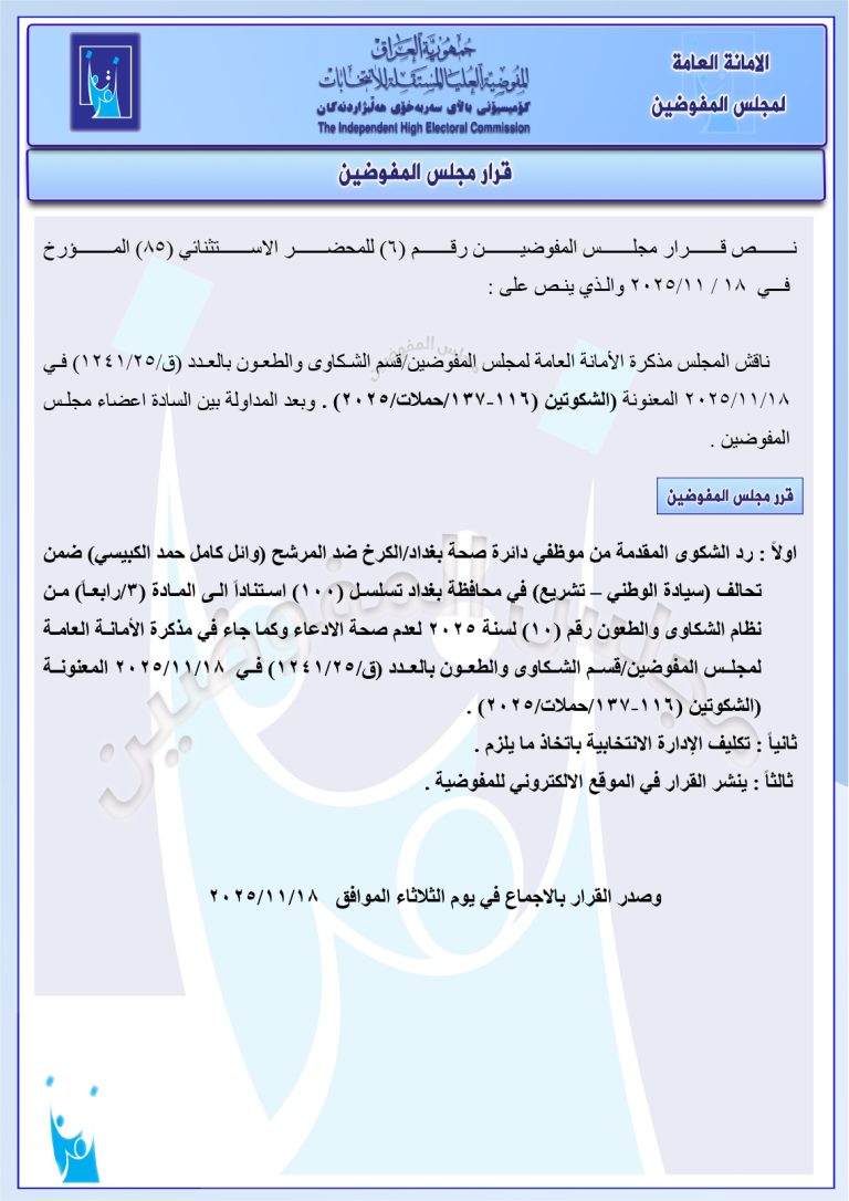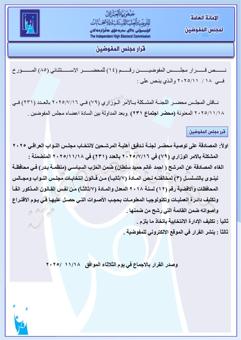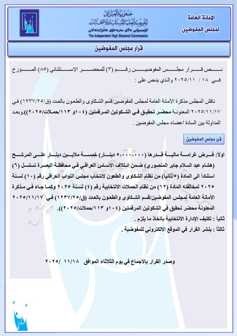 قرارات جديدة لمجلس المفوضين: استبعاد مرشح وتغريم آخرين ورد عدد من الشكاوى (وثائق)