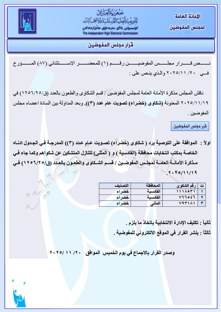 وثائق: رد شكوى خميس الخنجر ضد أحمد شهيد وشكوى عالية نصيف ضد عثمان الشيباني وغيرها قرارات جديدة لمجلس المفوضين Slide, أخبار انتخابية, كل الأخبار