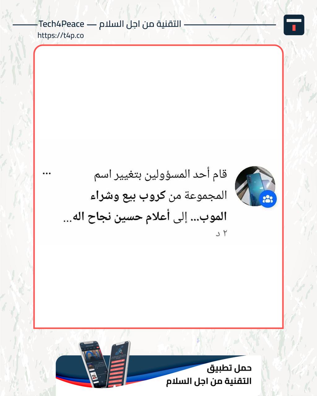 ونشرت قناة التقنية من أجل السلام في تطبيق تليغرام رسالتها الأولى حول هذا الأمر، من خلال الإشارة إلى تغيير اسم مجموعة من (كروب بيع وشراء الموبايلات في الديوانيه) إلى (أعلام حسين نجاح الهلالي (ابو كيان)).