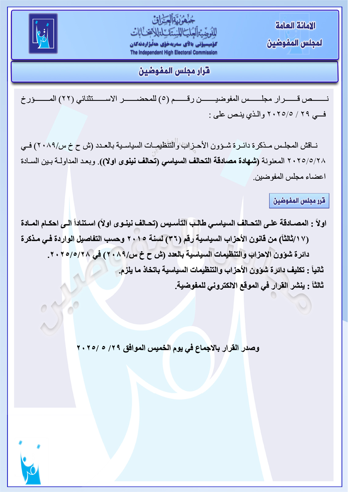 بغداد / شبكة أخبار الانتخابات العراقية