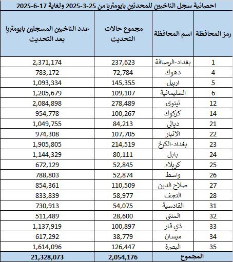 أعلنت المفوضية العليا المستقلة للانتخابات، اليوم الأربعاء، تسجيلها أكثر من مليوني حالة تحديث خلال فترة تحديث سجل الناخبين، مبيّنة أن العدد الكلي للمسجّلين بايومترياً تجاوز 21.3 مليون.