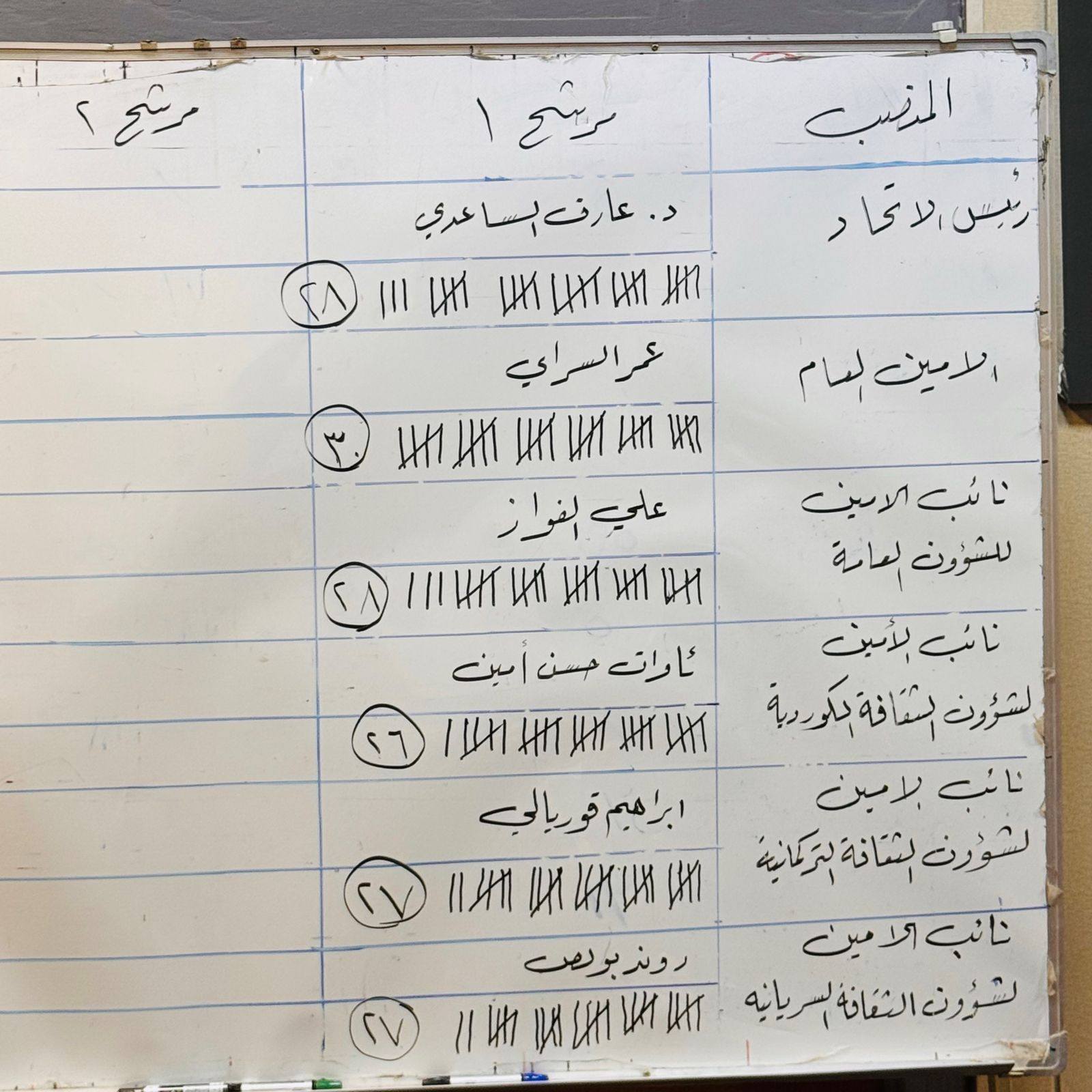 اجتمع المجلس المركزي للاتحاد العام للأدباء والكتّاب في العراق لانتخاب الرئيس والأمين العام والمكتب التنفيذي اليوم الجمعة ٢٠ حزيران ٢٠٢٥ إذ أعلن رسميا فوز الشاعر عارف الساعدي رئيساً، وعمر السراي أميناً عاماً، وقد فاز الناقد علي حسن الفواز نائباً للأمين العام، وتوزعت المهام الأخرى كما يلي: