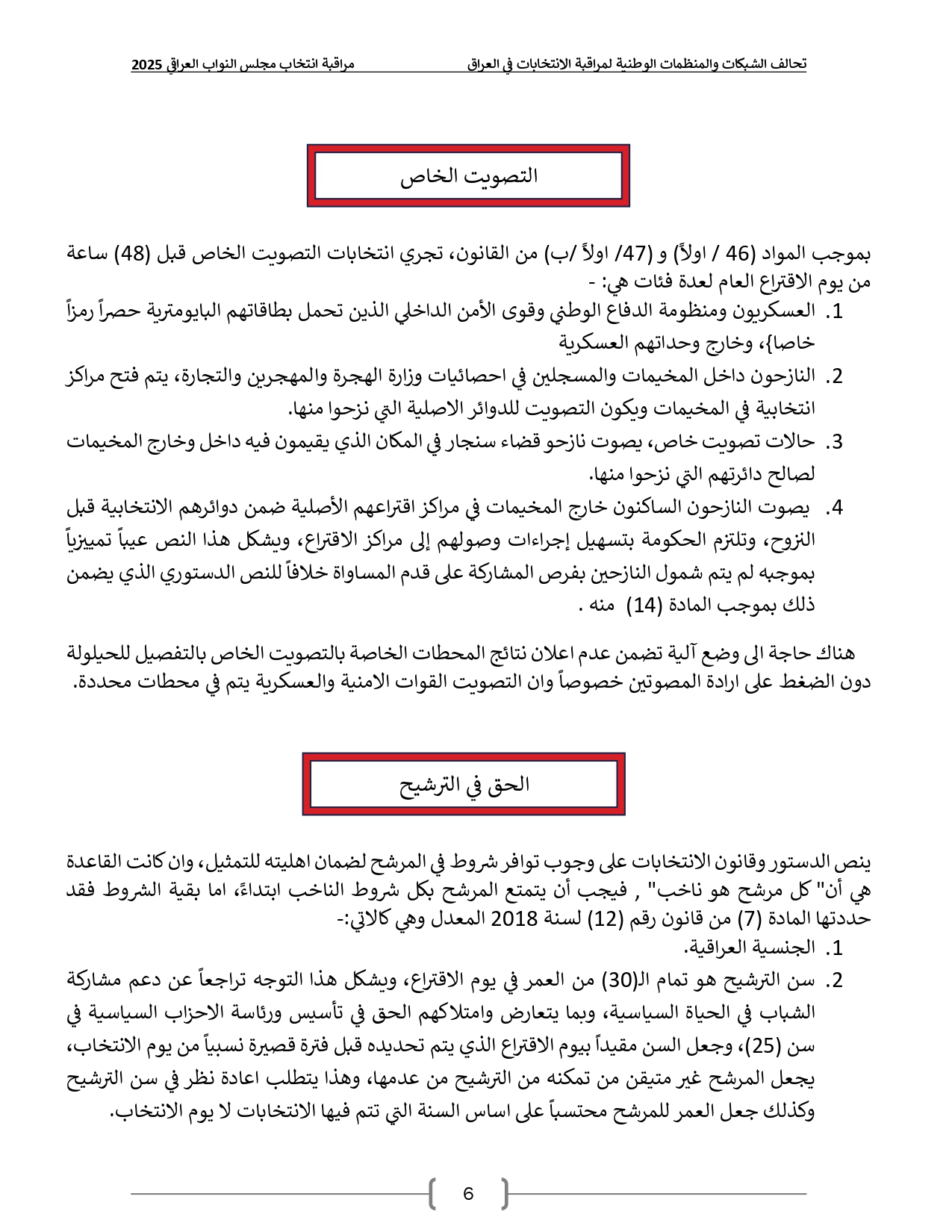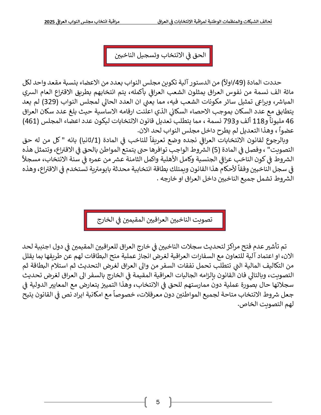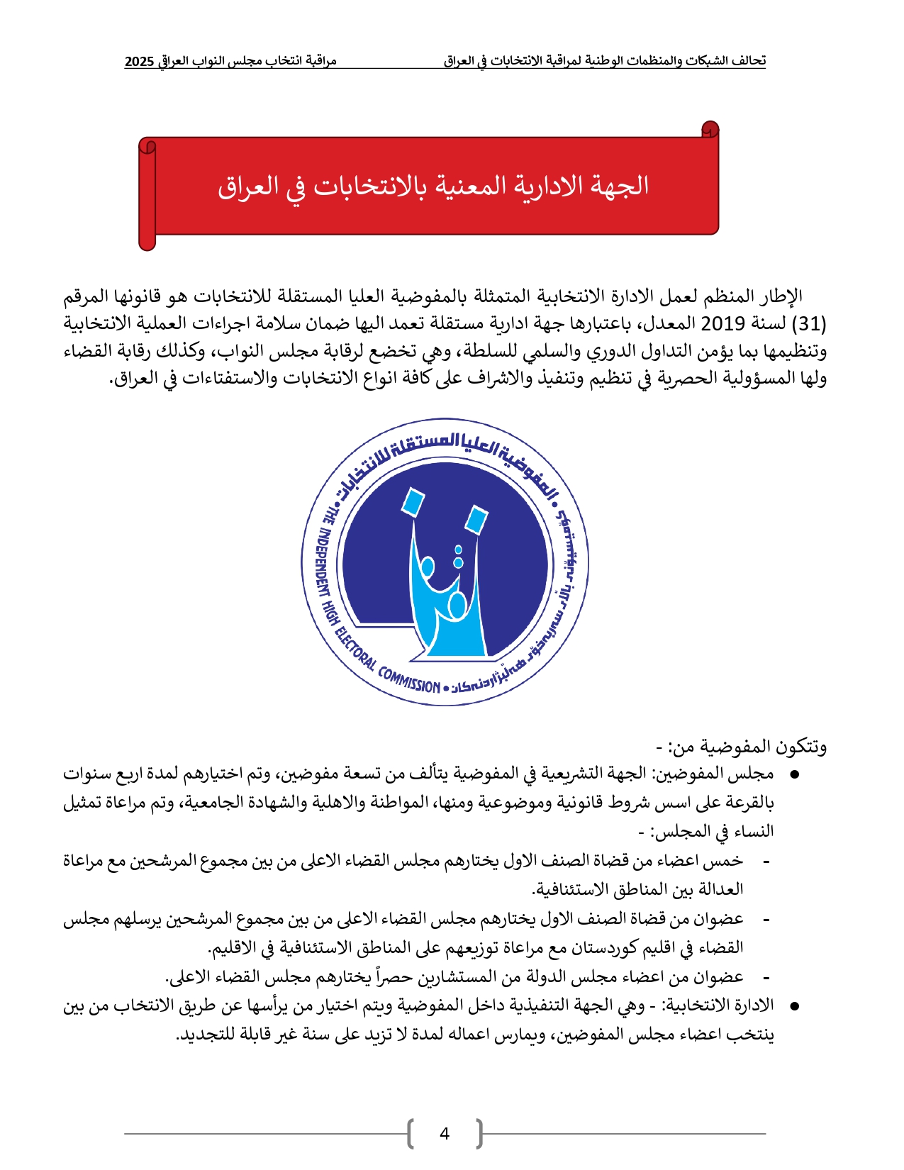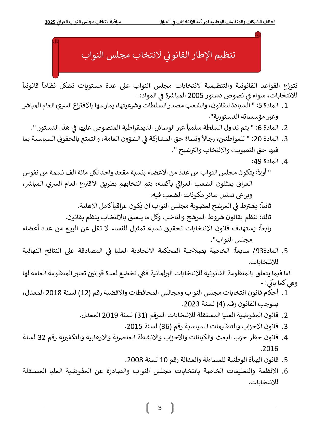 نشر تحالف الشبكات والمنظمات الوطنية لمراقبة الانتخابات في العراق، برنامج مراقبة انتخاب مجلس النواب الإطار القانوني لانتخاب مجلس النواب 2025.