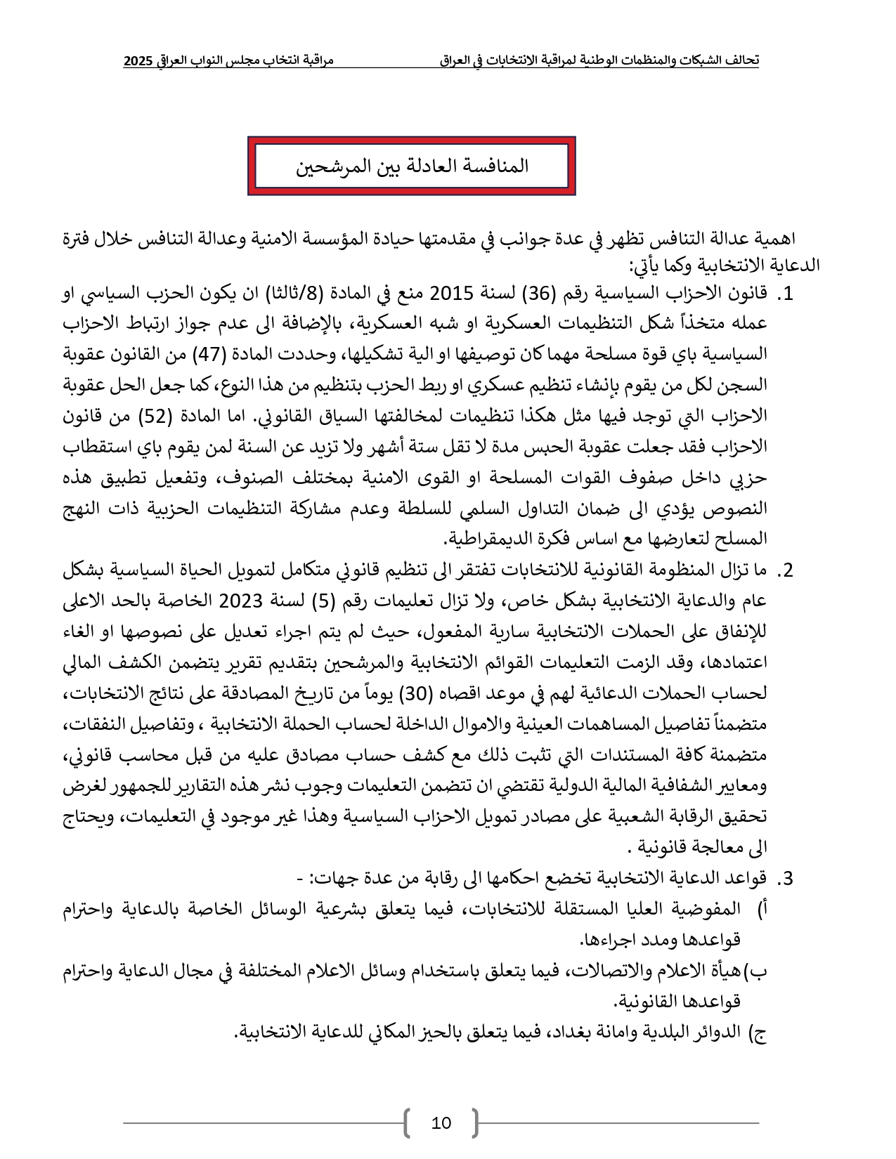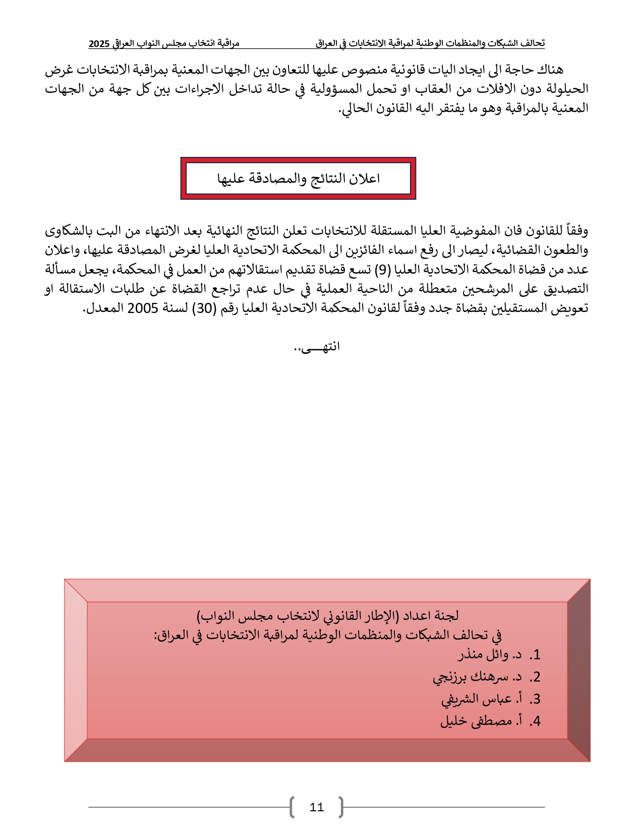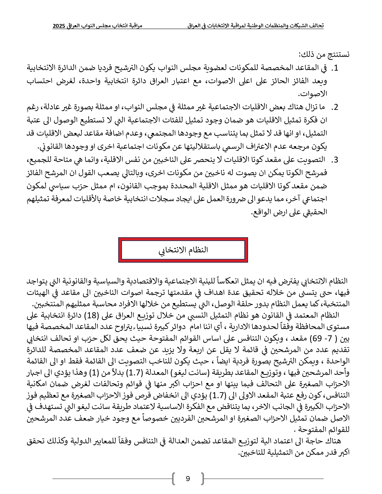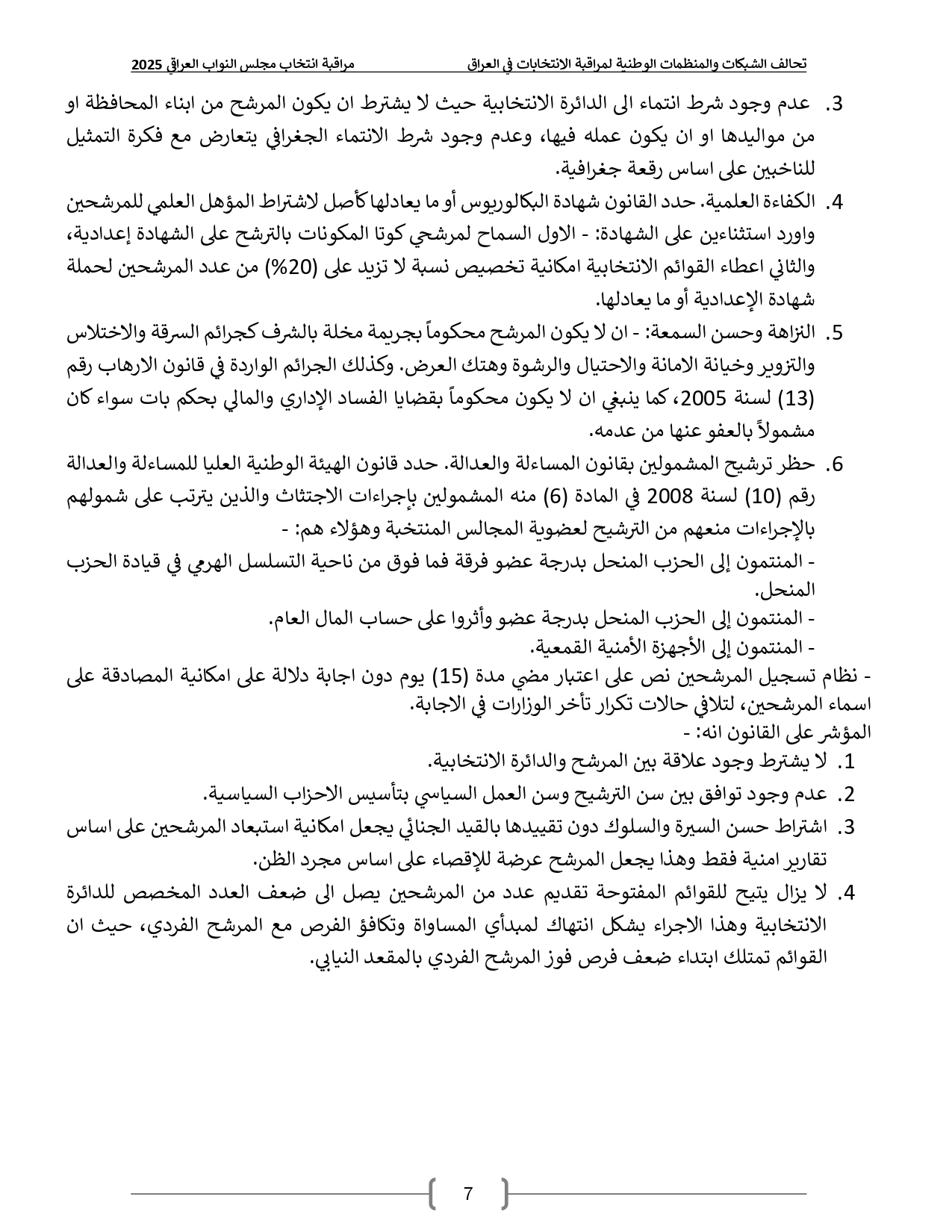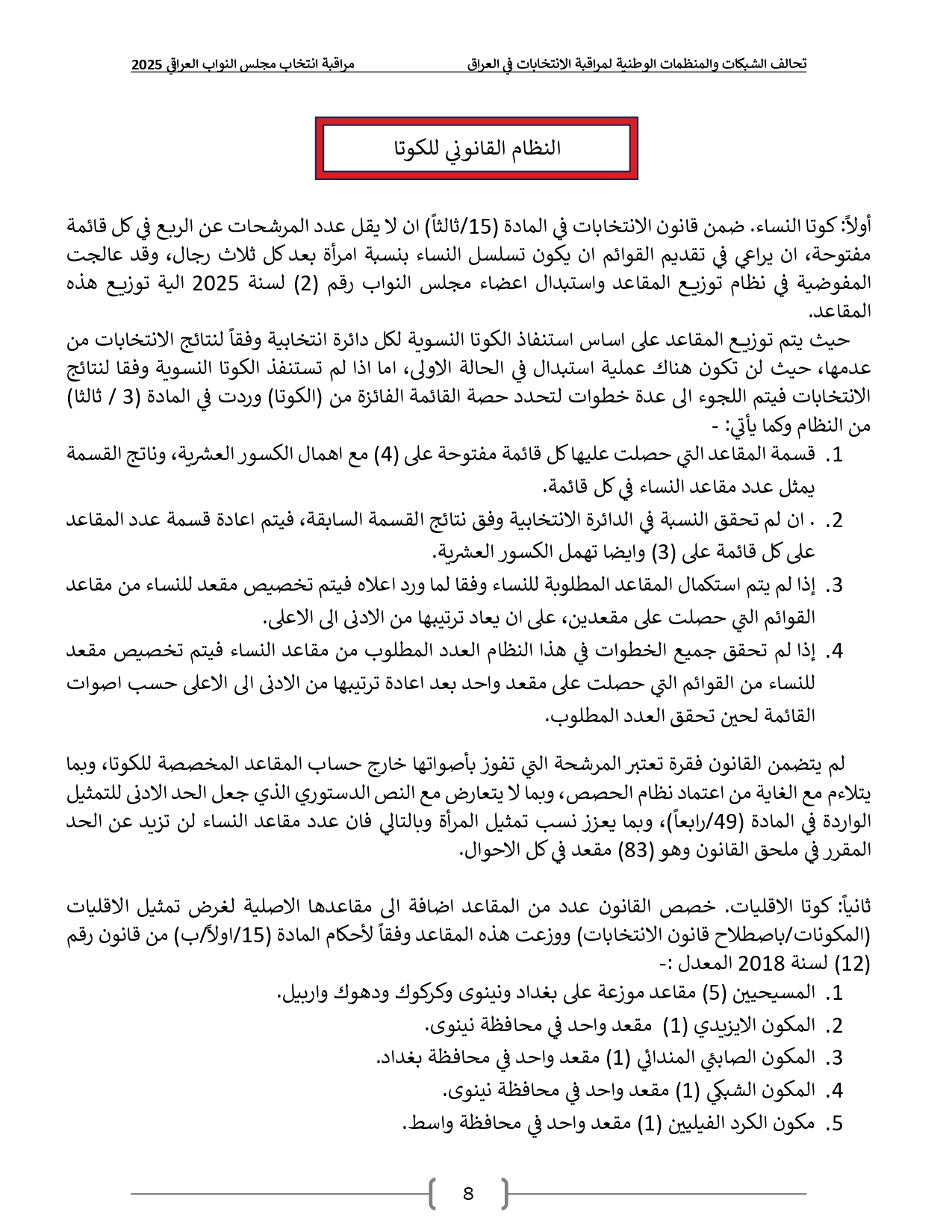 نشر تحالف الشبكات والمنظمات الوطنية لمراقبة الانتخابات في العراق، برنامج مراقبة انتخاب مجلس النواب الإطار القانوني لانتخاب مجلس النواب 2025.