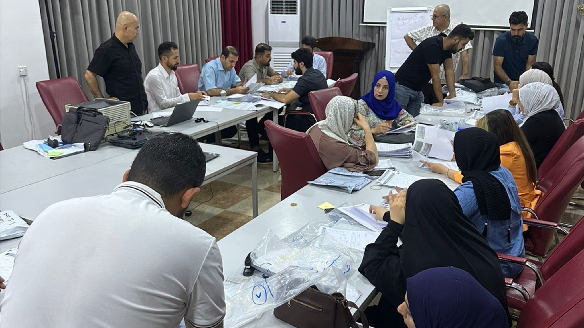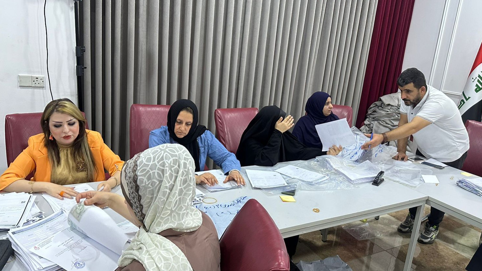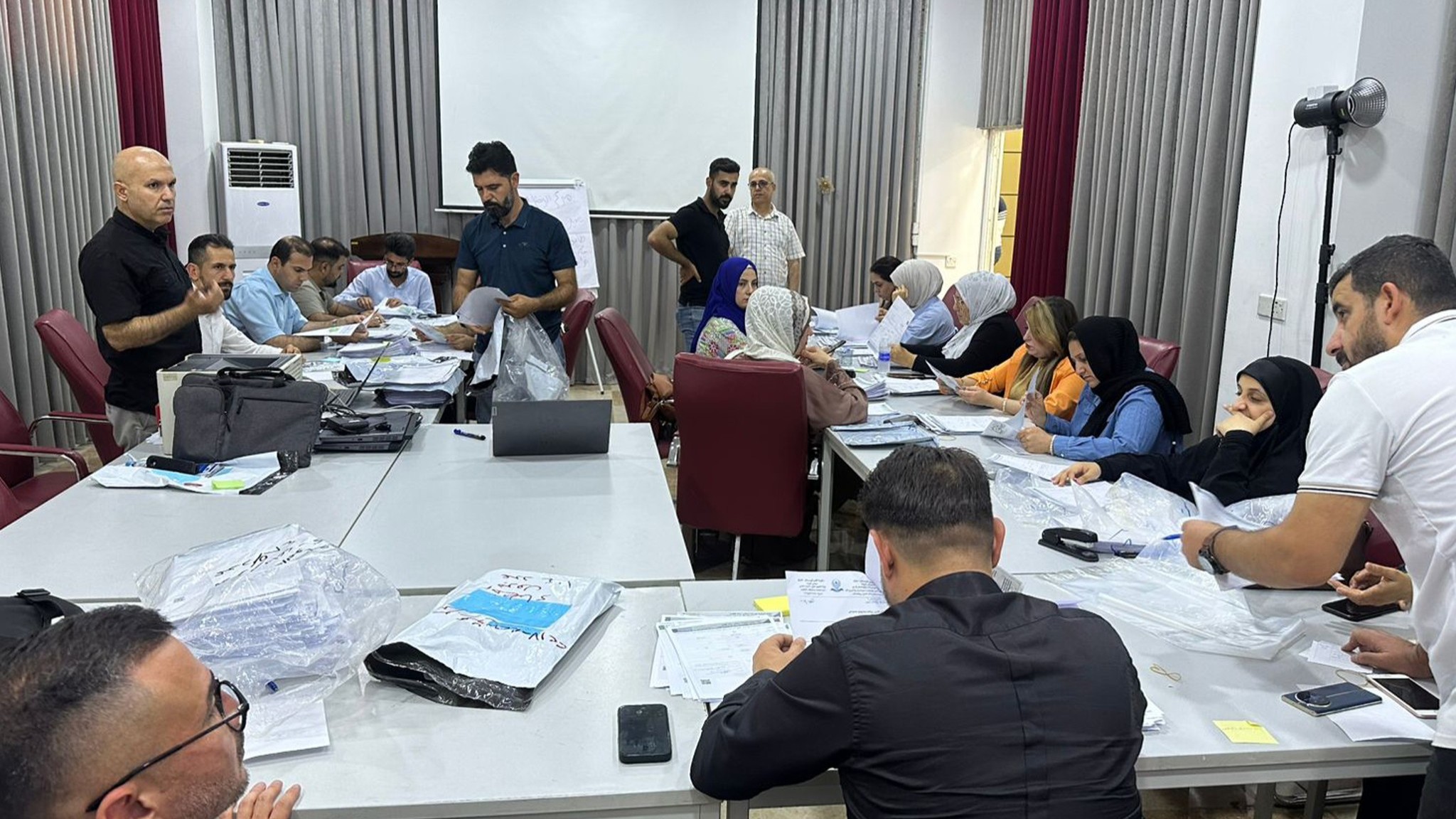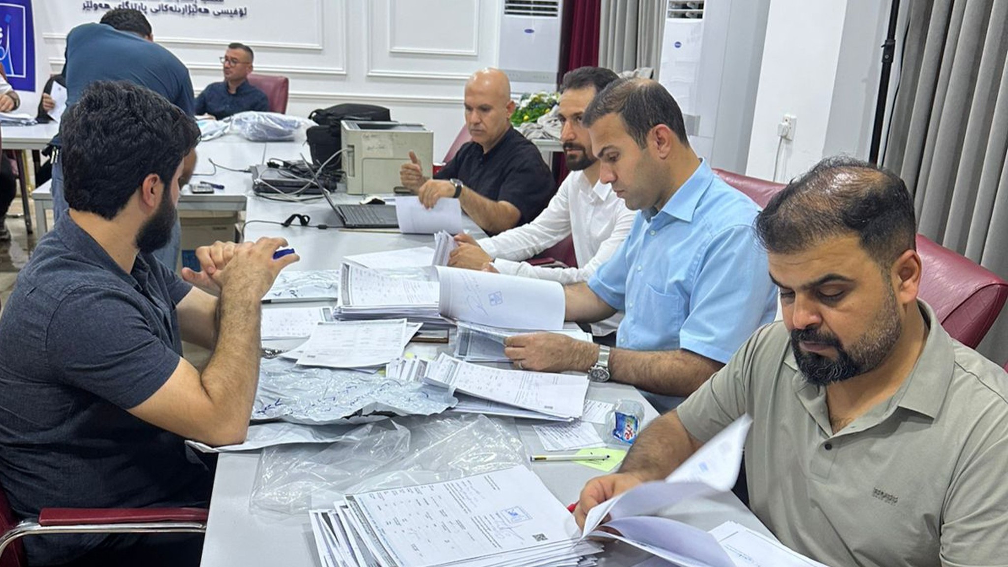 ونشر مكتب انتخابات أربيل صوراً تظهر جانباً من نشاط لجنة اختيار موظفي الاقتراع في المكتب، في تدقيق استمارات المتقدمين.