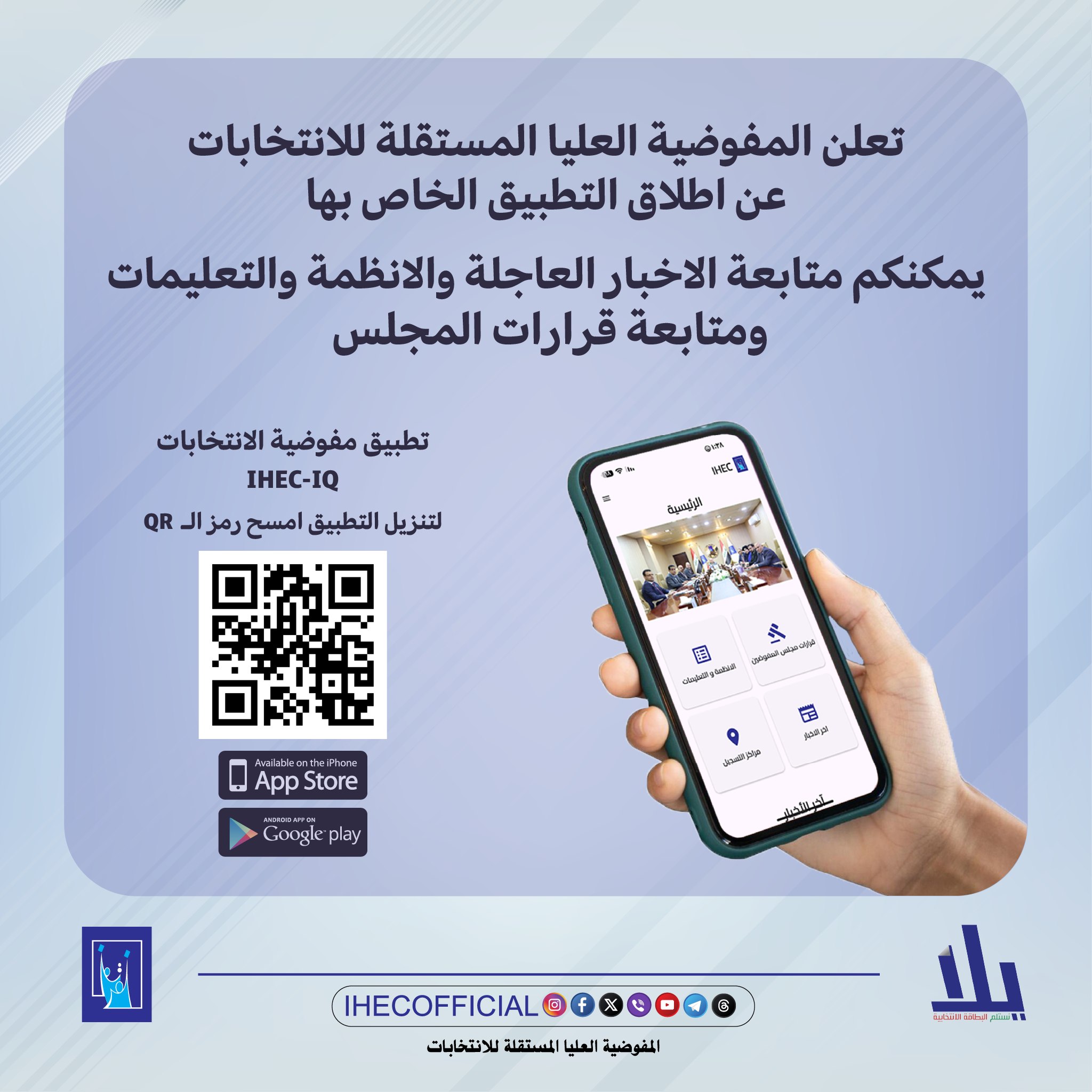 أعلنت المفوضية العليا المستقلة للانتخابات، اليوم الاثنين، إطلاق التطبيق الخاص بها.