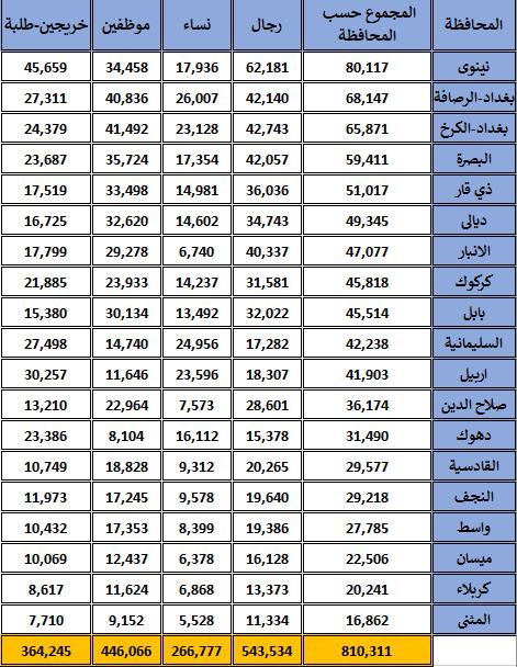 أظهرت إحصائية جديدة أصدرتها المفوضية العليا المستقلة للانتخابات، أن عدد المتقدمين للعمل كموظفي اقتراع يبلغ أكثر من 810 آلاف متقدم، في حين لا يزال التقديم مستمراً وفقاً لآخر تمديد أعلنته المفوضية، حتى الخامس من الشهر الحالي.