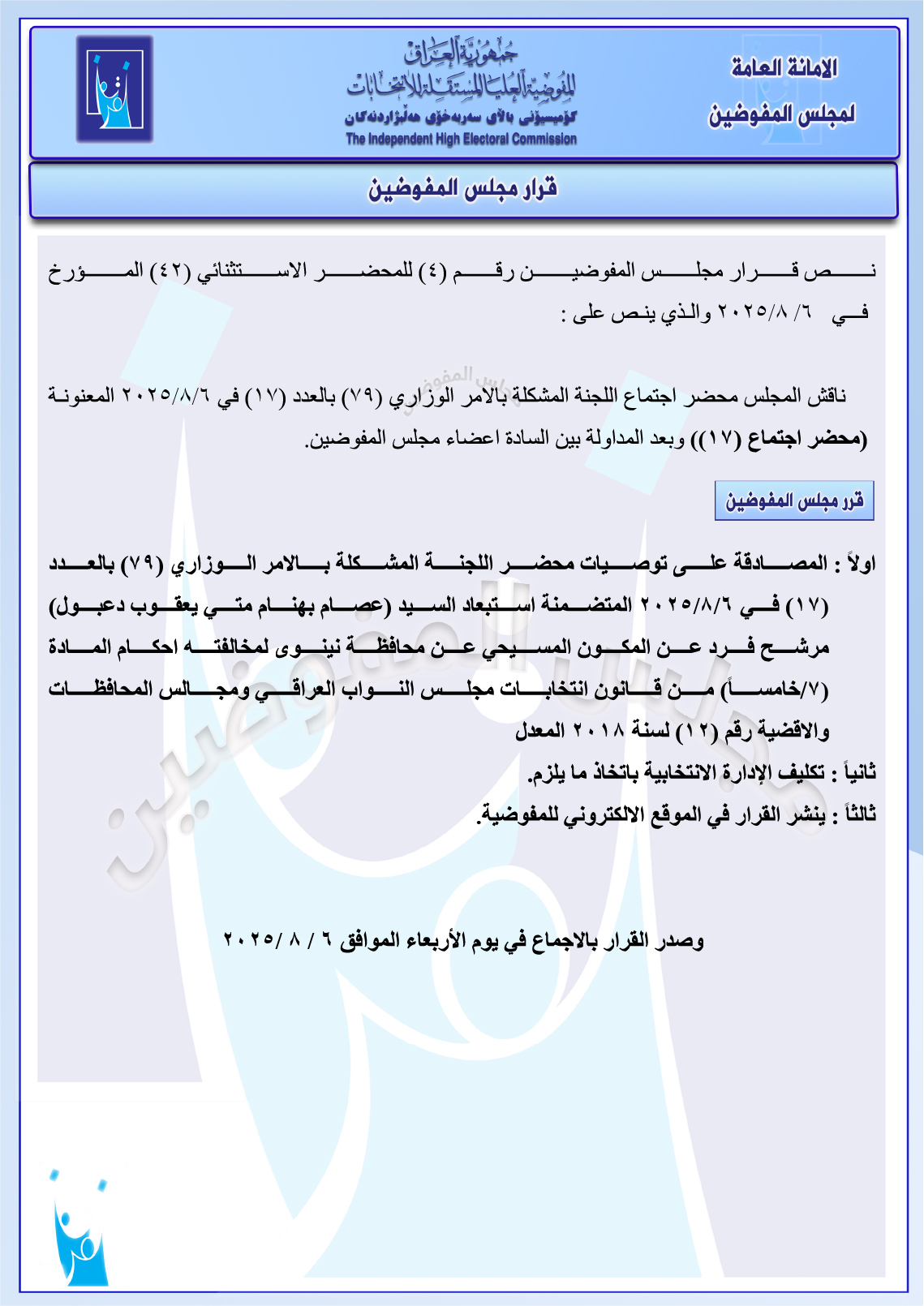 قرار جديد لمجلس المفوضين: استبعاد مرشح عن المكوّن المسيحي في محافظة نينوى