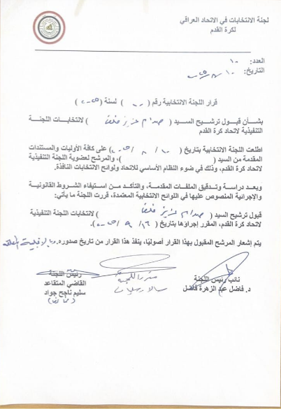 وكانت وسائل إعلام قد نشرت سابقاً أن لجنة الانتخابات قررت استبعاد العضوين المرشحين من صلاح الدين، وهما صدام عزيز، الرئيس الجديد للاتحاد الفرعي، وجواد الجبوري، رئيس الاتحاد الفرعي في السنوات الأربع الأخيرة.