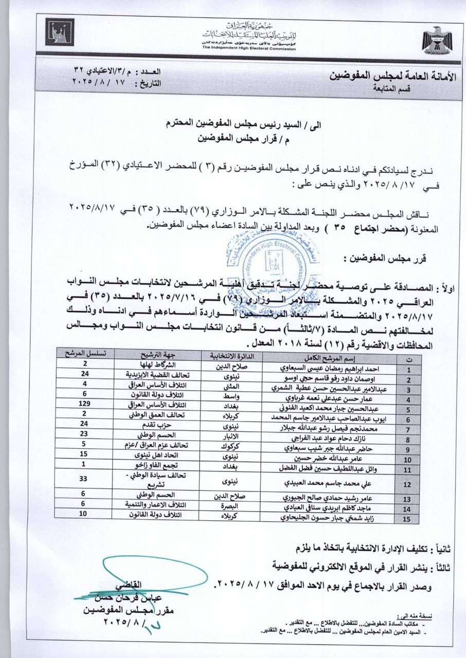 وثائق جديدة: مجلس المفوضين يصادق على استبعاد 27 مرشحاً من الانتخابات المقبلة
