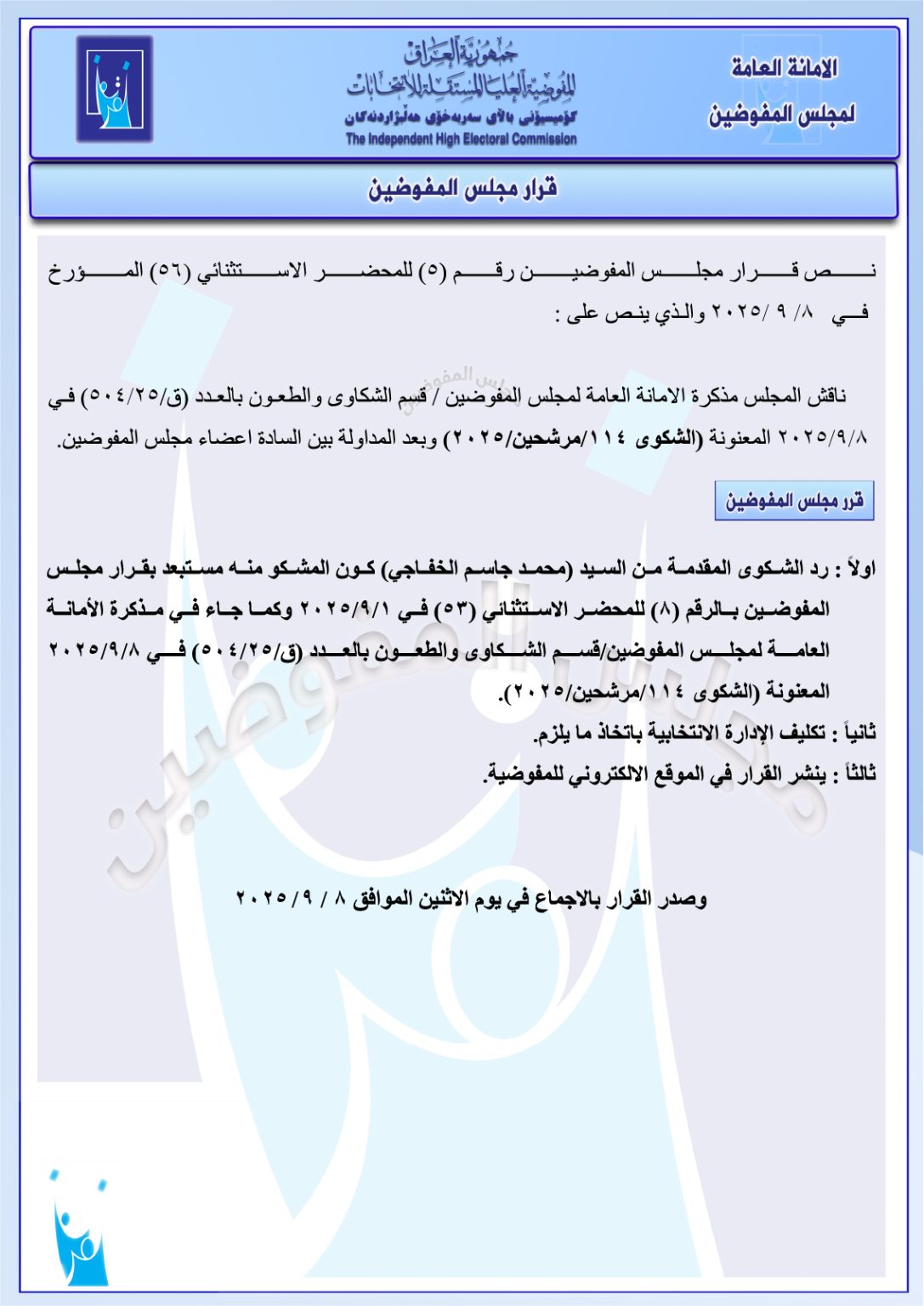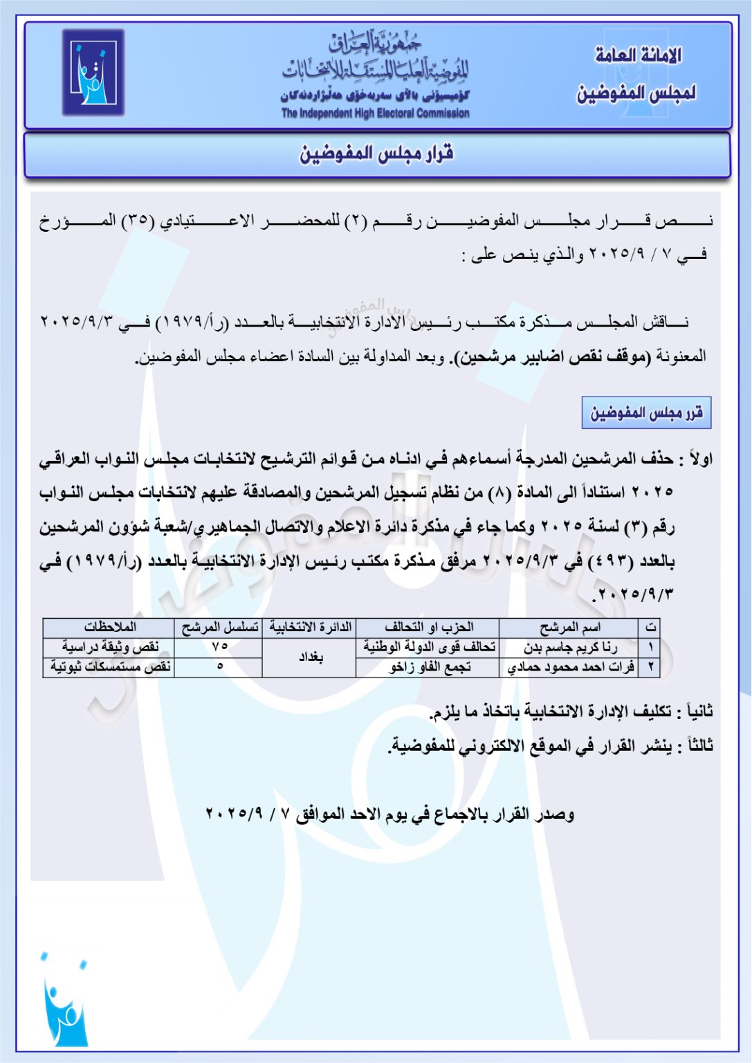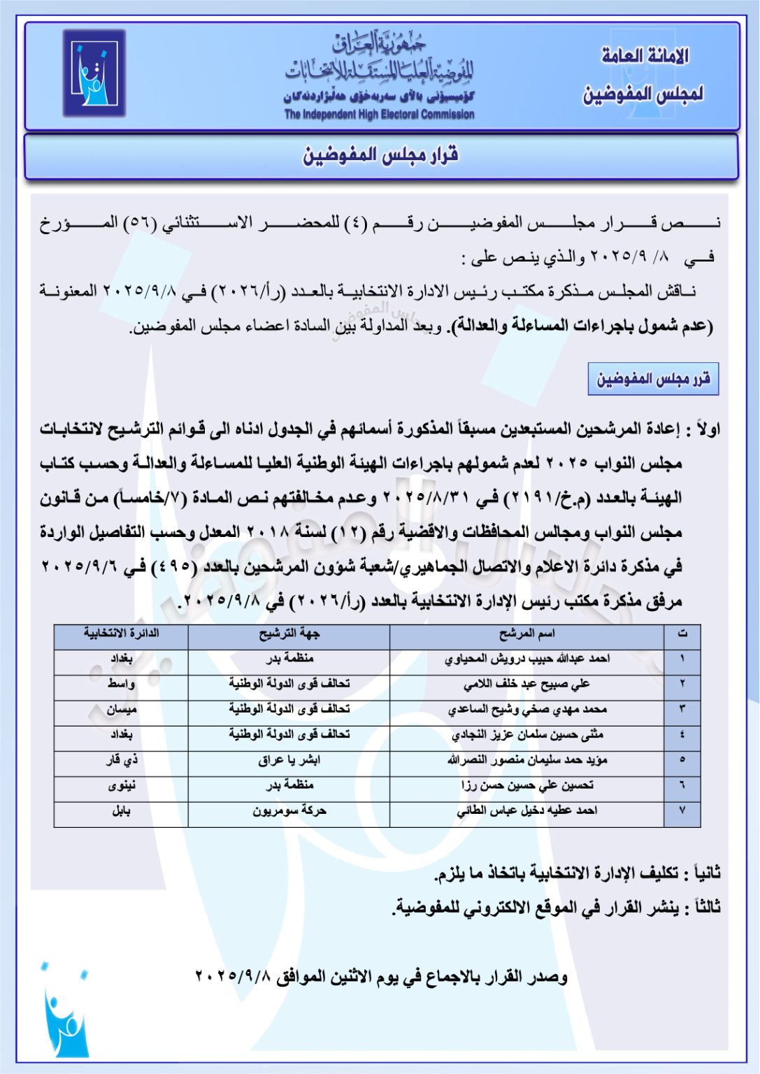 وثائق: جميع قرارات مجلس المفوضين ليومي الأحد والاثنين.. استبعاد وحذف وإعادة مرشحين وغيرها