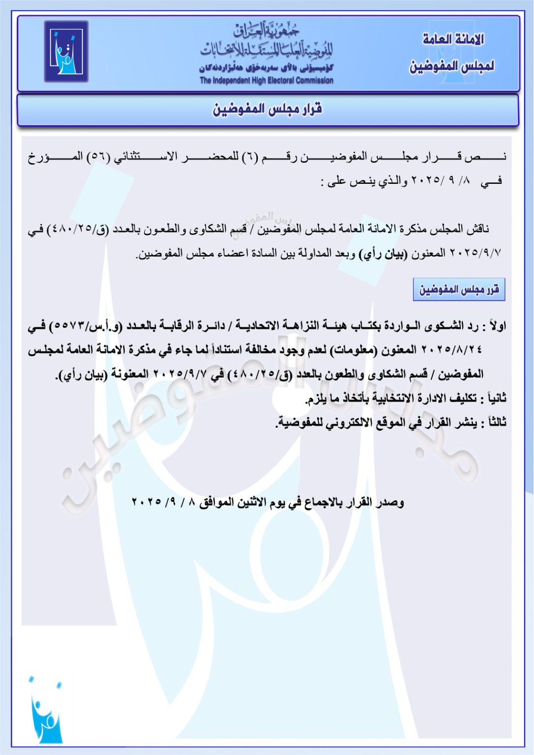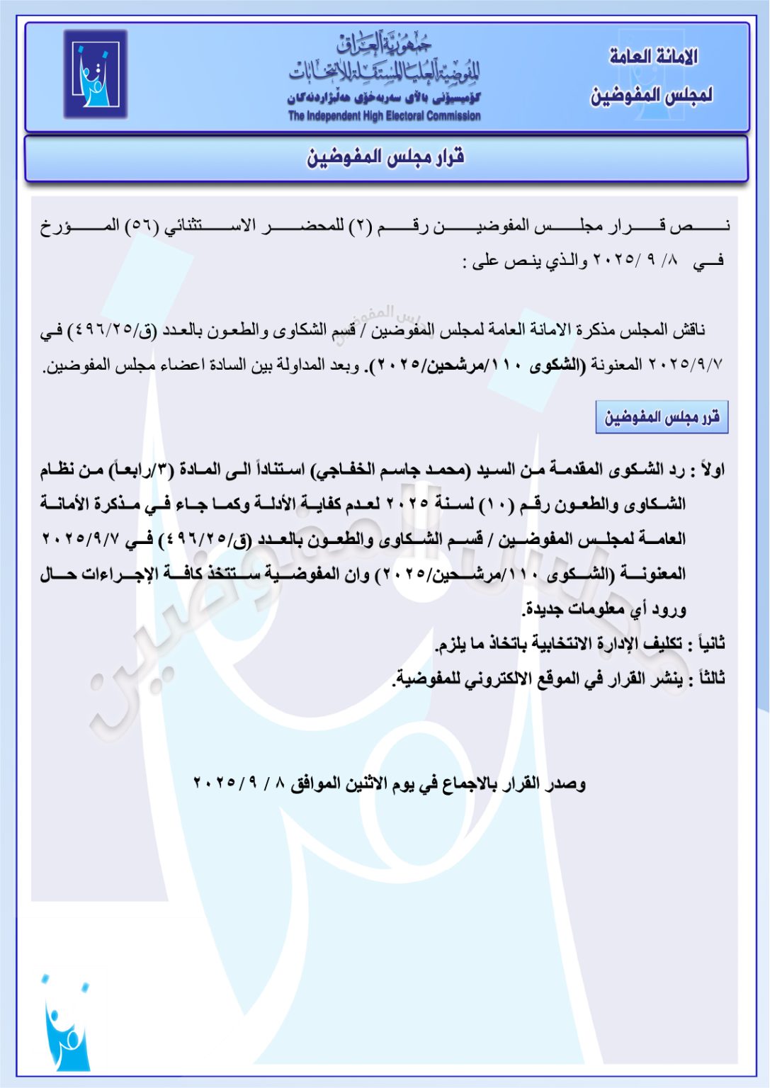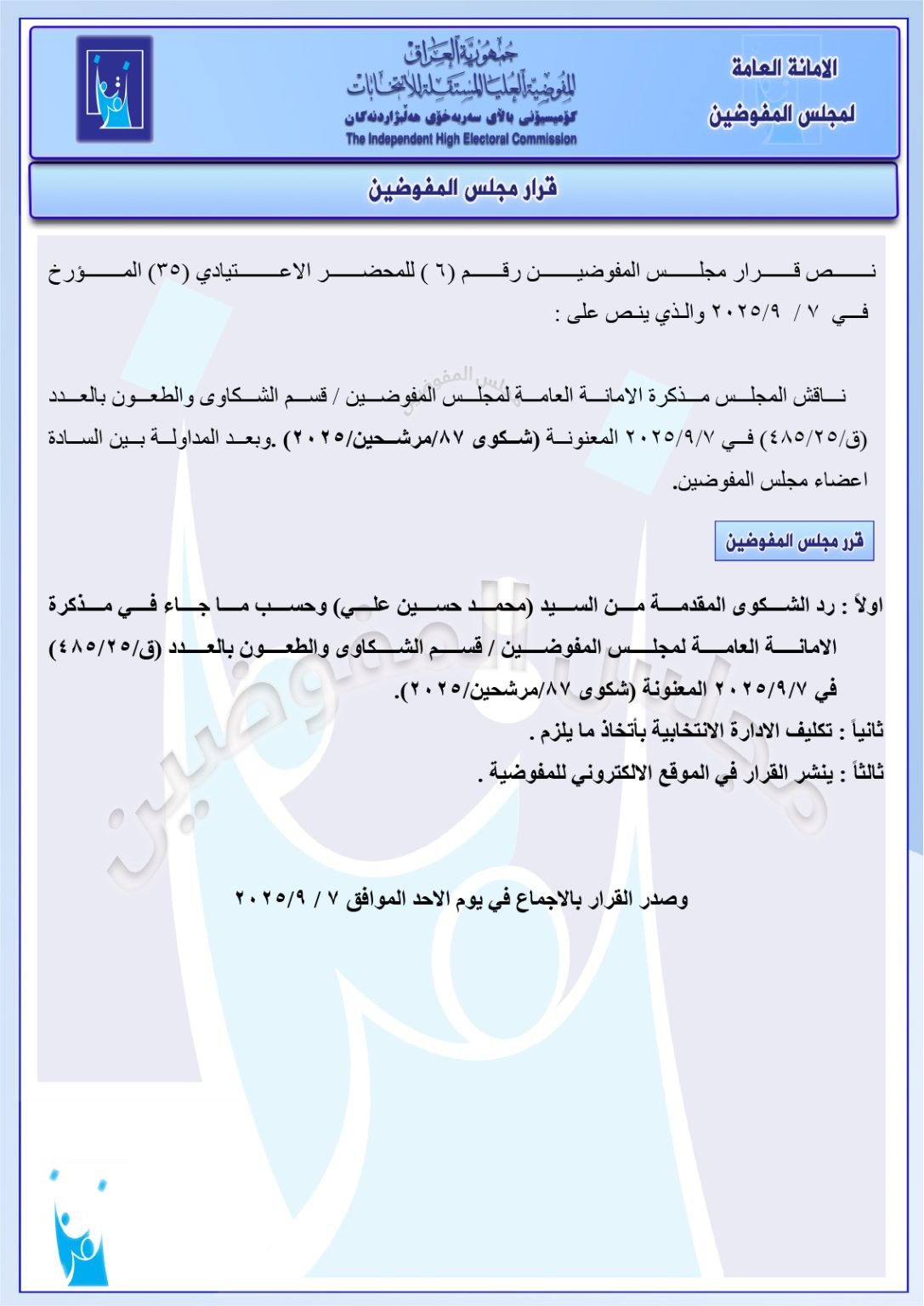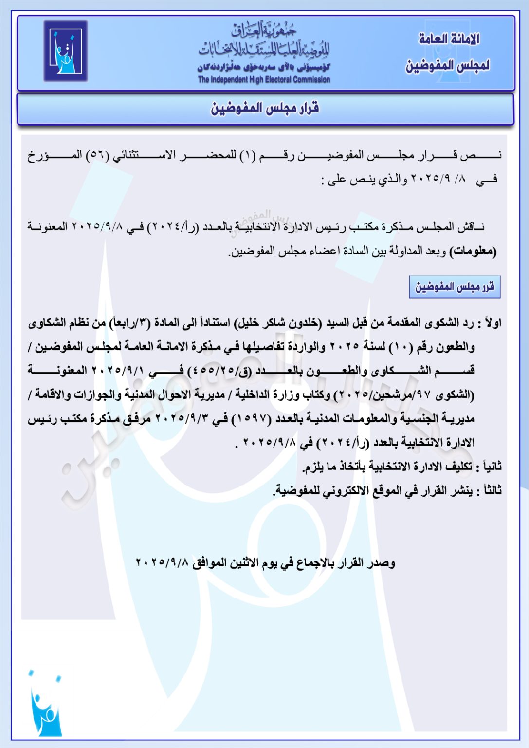 وثائق: جميع قرارات مجلس المفوضين ليومي الأحد والاثنين.. استبعاد وحذف وإعادة مرشحين وغيرها