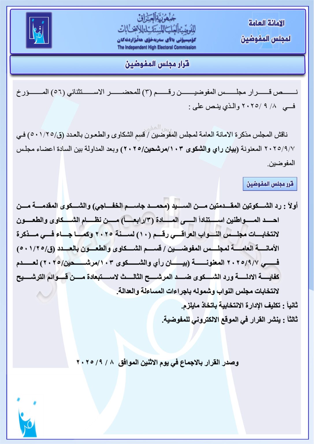 قرارات جديدة لمجلس المفوضين: رد 9 من الشكاوى المقدمة إلى المجلس حول ملفات عدة