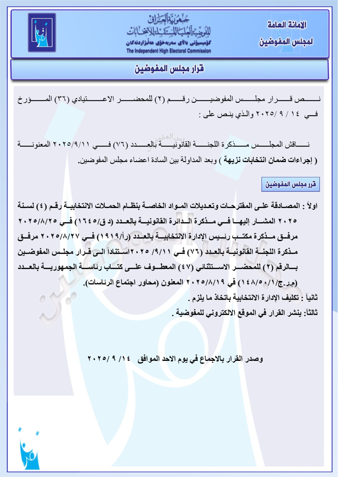 وثائق: مجلس المفوضين يصادق على “إجراءات ضمان انتخابات نزيهة”.. ويرد شكوى لأحد المرشحين