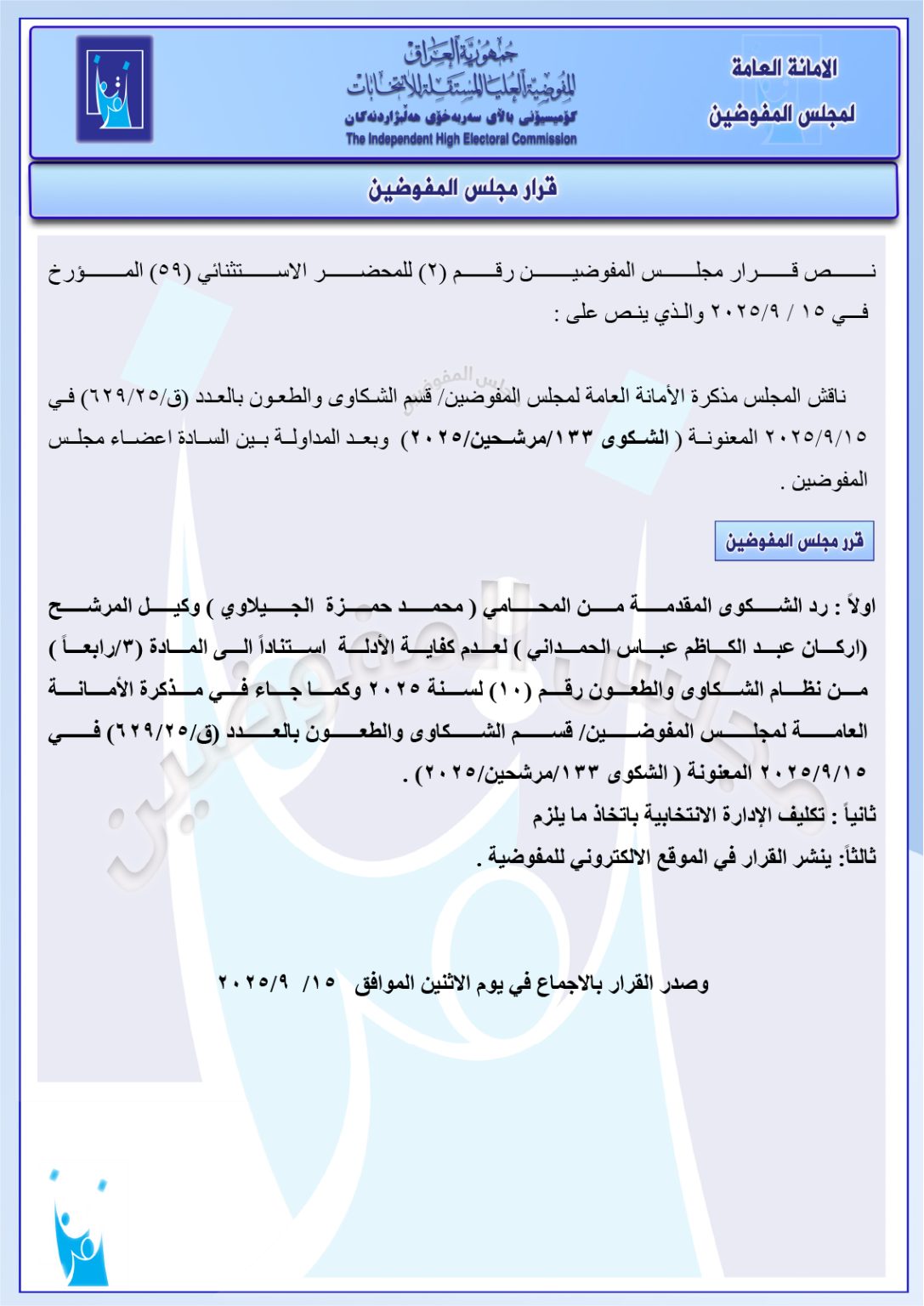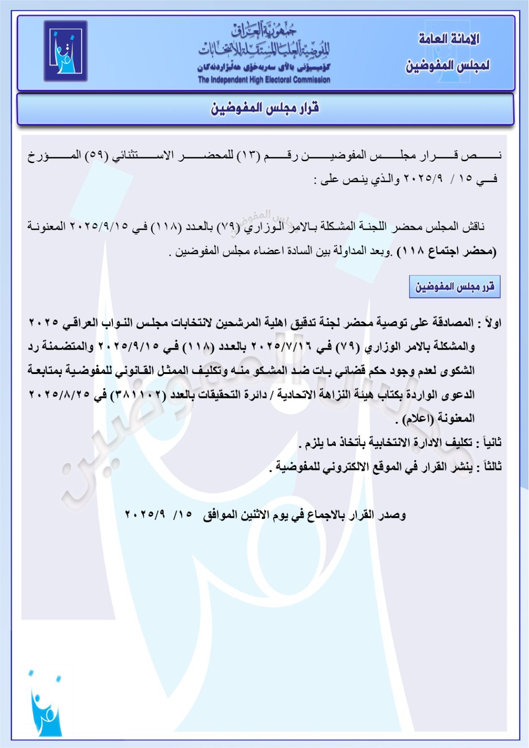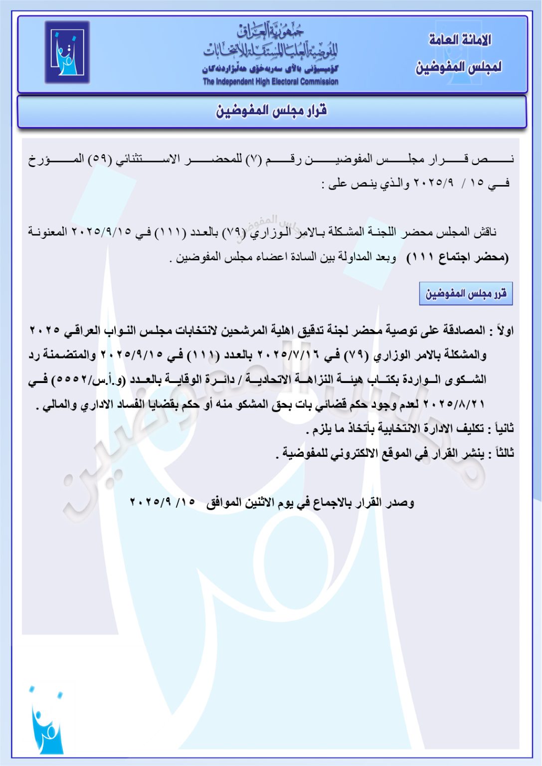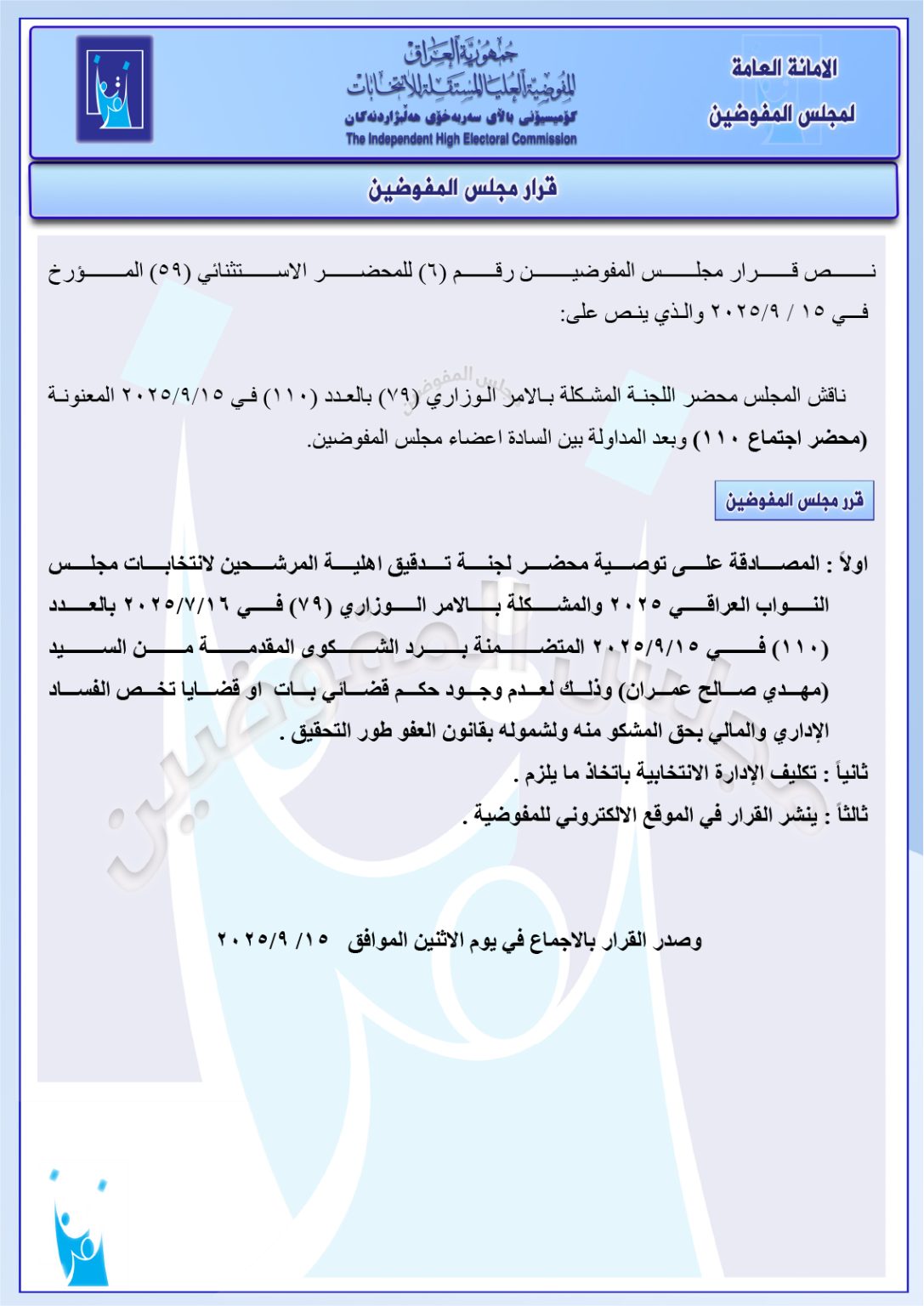 وثائق لمجلس المفوضين: قرارات جديدة تخص مجموعة من المرشحين للانتخابات النيابية المقبلة تتضمن 14 رداً على مجموعة من الإخبارات والشكاوى