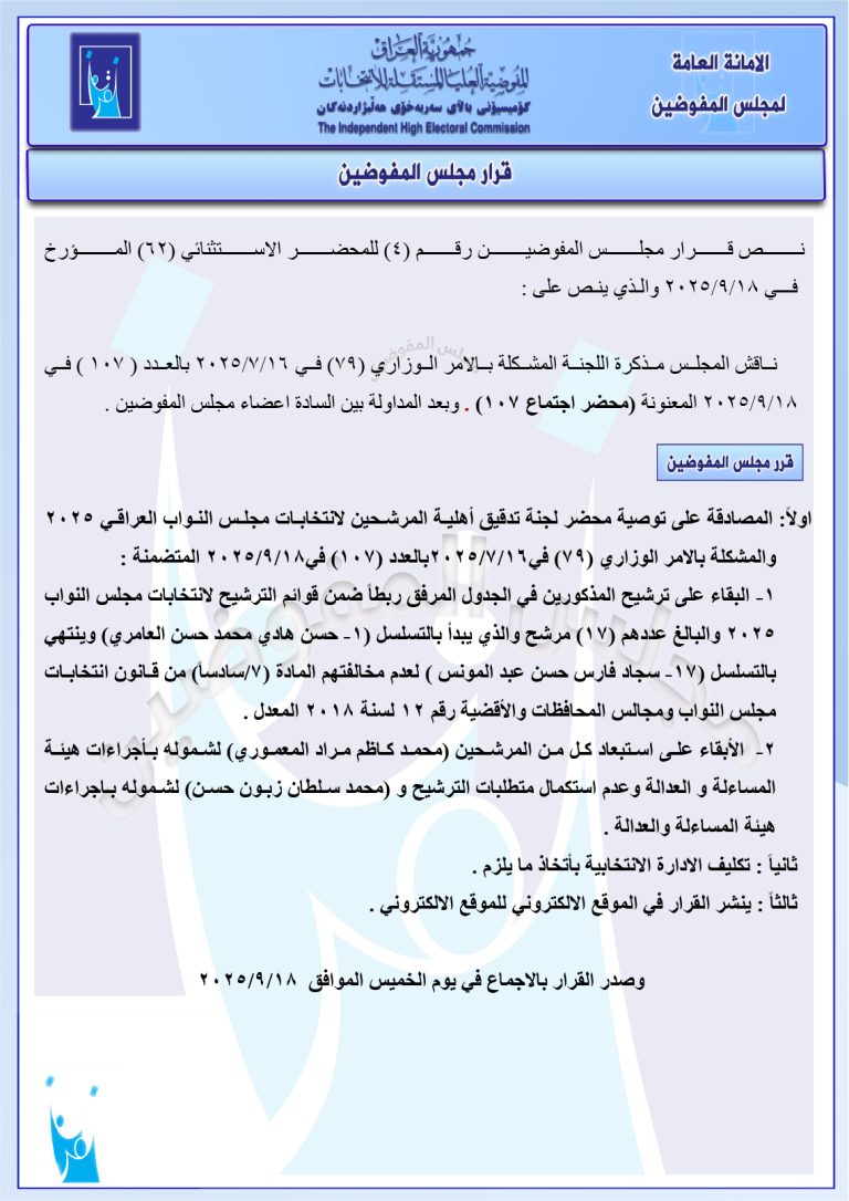 وثائق جديدة: مجلس المفوضين يقرر استبعاد مرشحين اثنين.. ويبقي على ترشيح 17 مرشحاً آخر