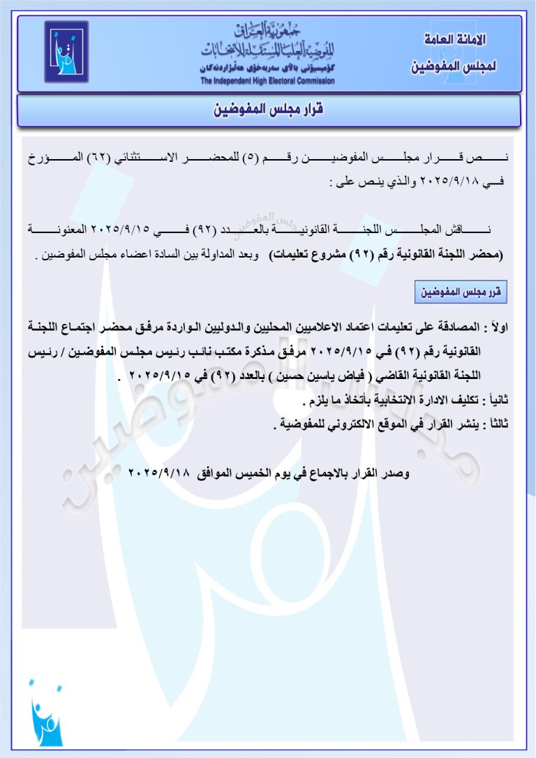وثائق: مجلس المفوضين يصادق على تعليمات اعتماد الإعلاميين.. وعلى إجراءات بحق 3 من المرشحين