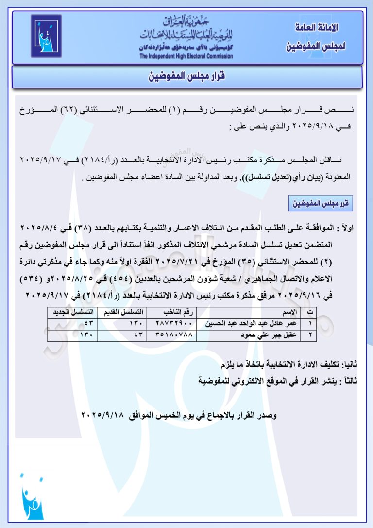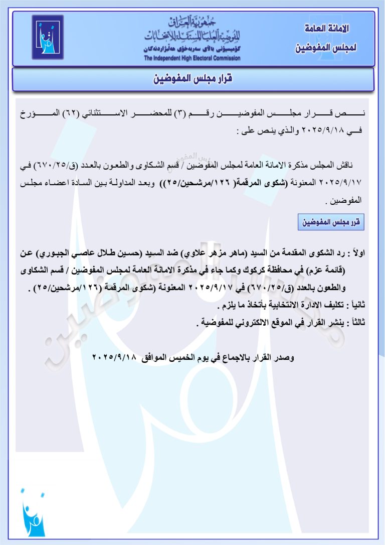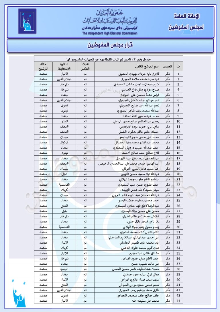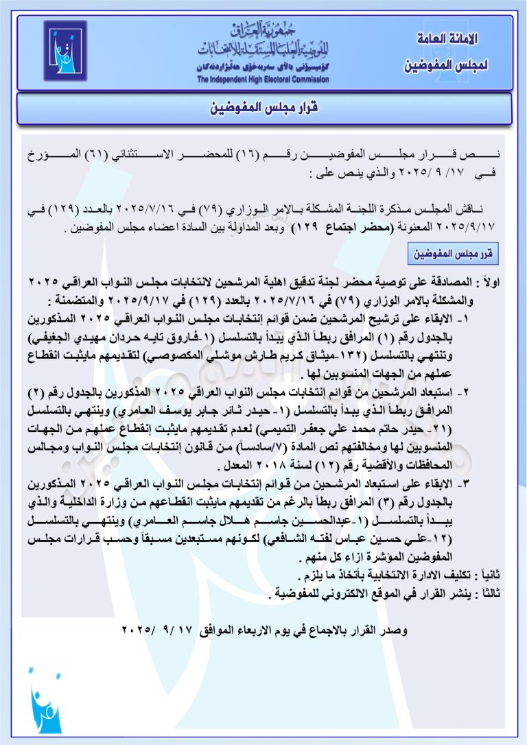 وثائق: جميع قرارات مجلس المفوضين الأخيرة.. تتضمن إجراءات بحق 187 مرشحاً لانتخابات 11/11
