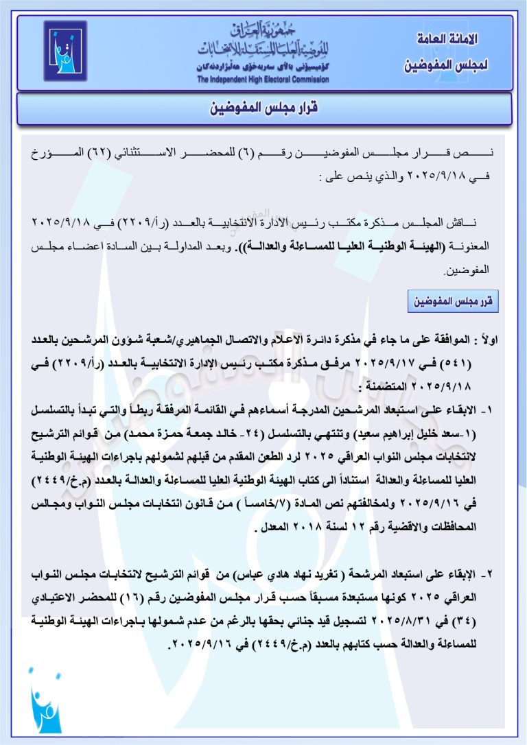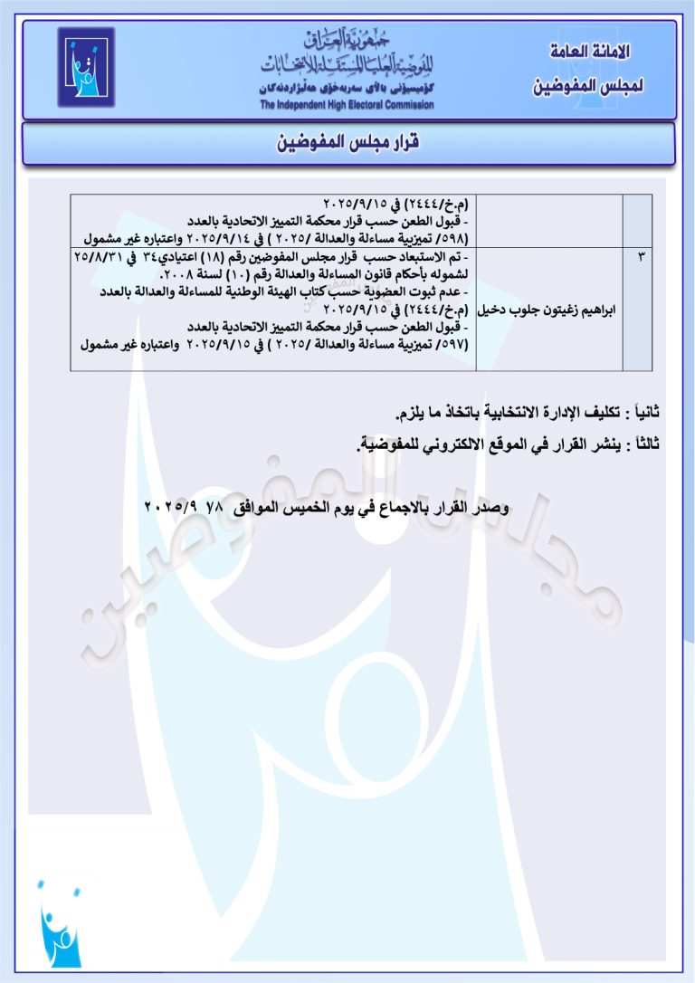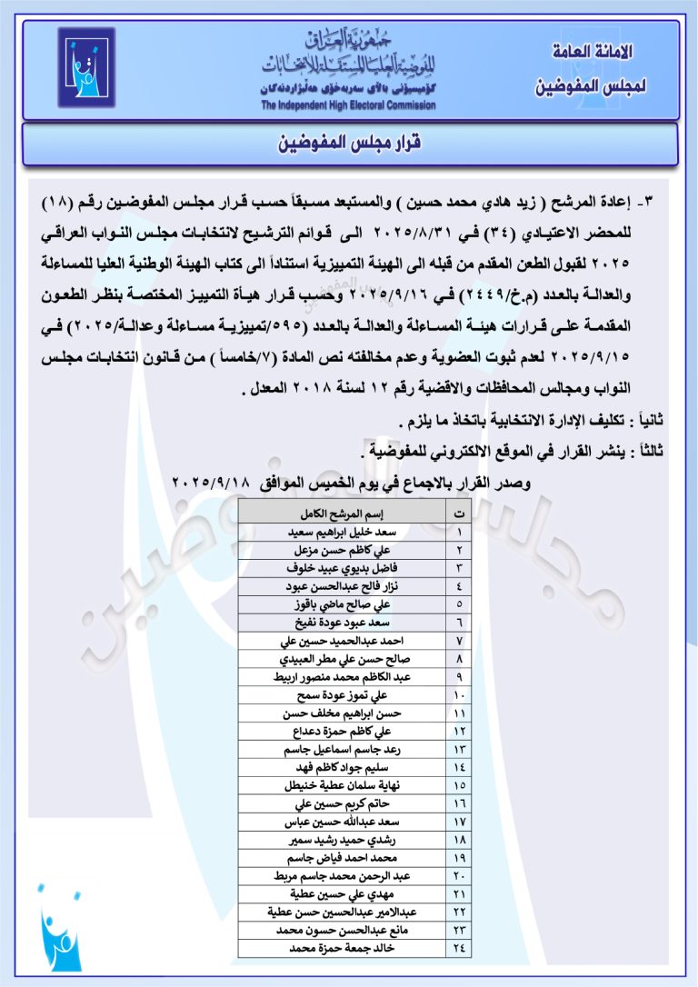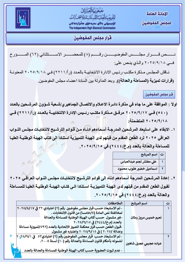 وثائق صادرة عن مجلس المفوضين: إجراءات جديدة بحق أكثر من 80 مرشحاً للانتخابات المقبلة