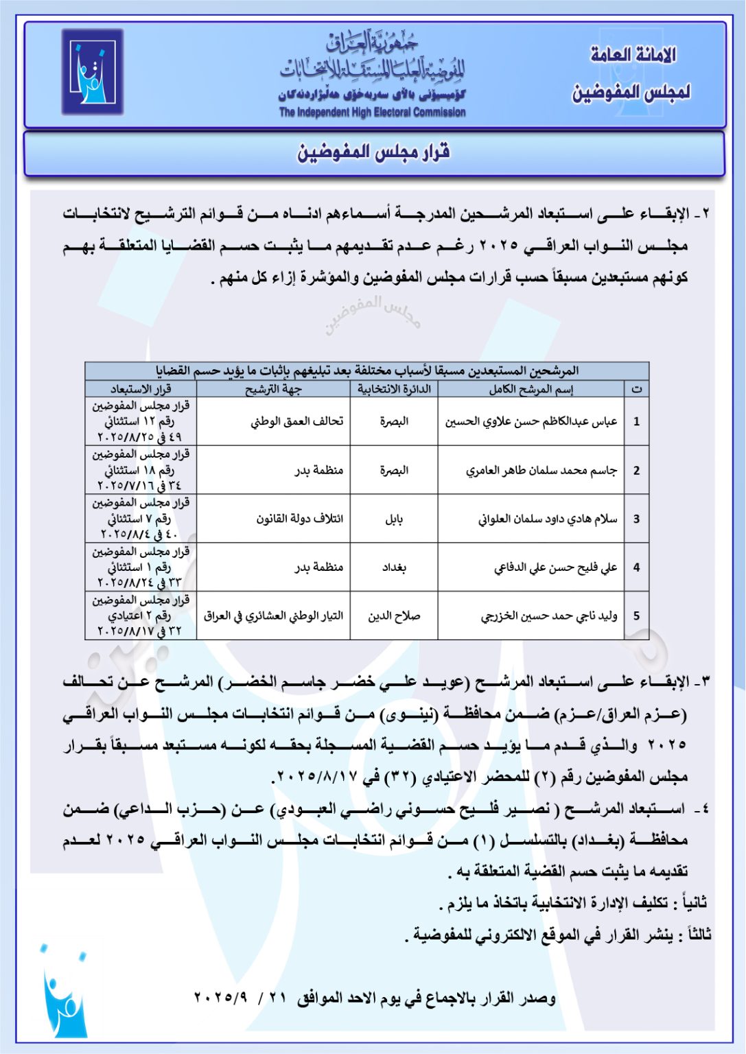 وثائق: استبعاد مرشح بالتسلسل 1 عن حزب سياسي.. والإبقاء على ترشيح 65 وعلى استبعاد 6 غيرهم