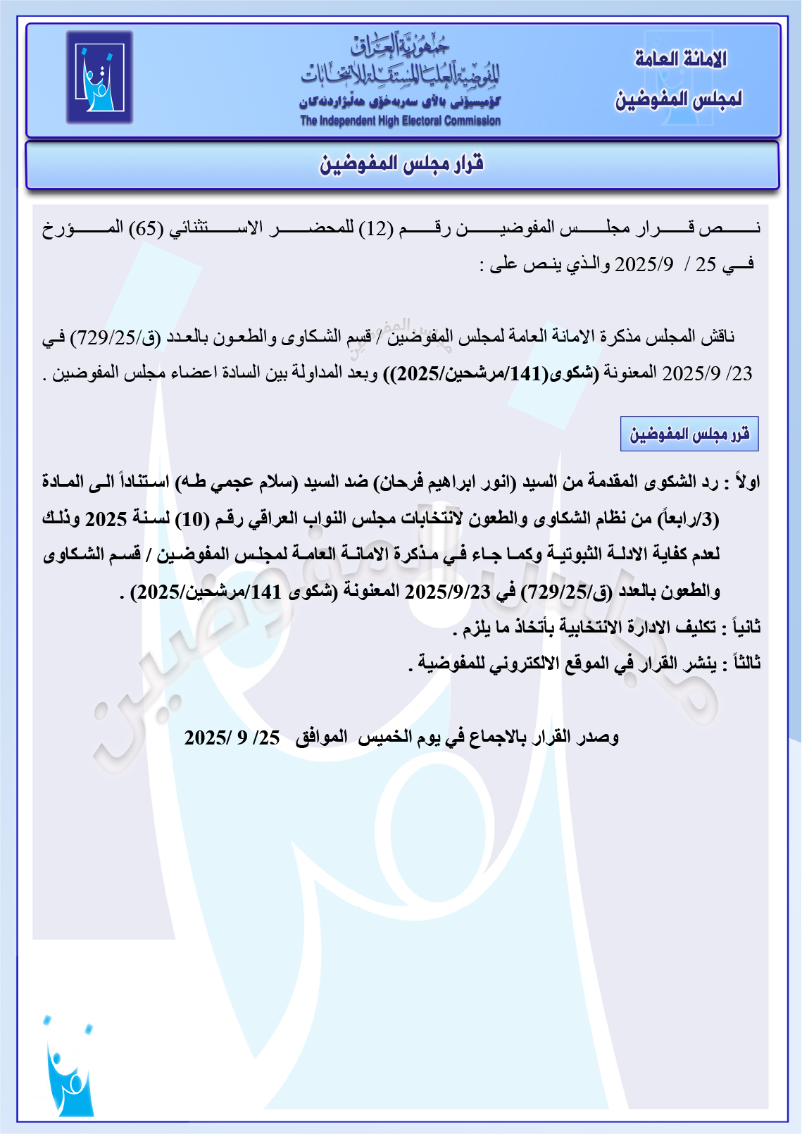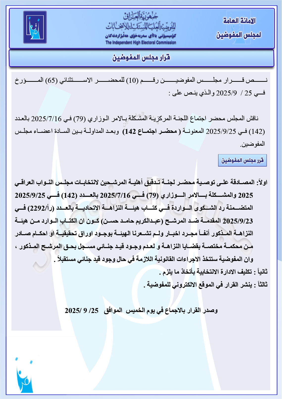 المفوضية تُصدر تقرير المنتصف للتصويت الخاص في الانتخابات.. وتُعلن نسب المشاركة يتضمن القوات الأمنية والنازحين من هنا وهناك