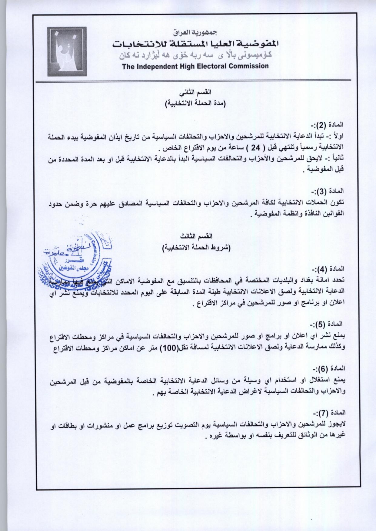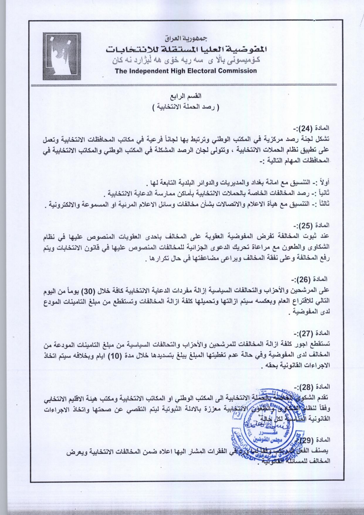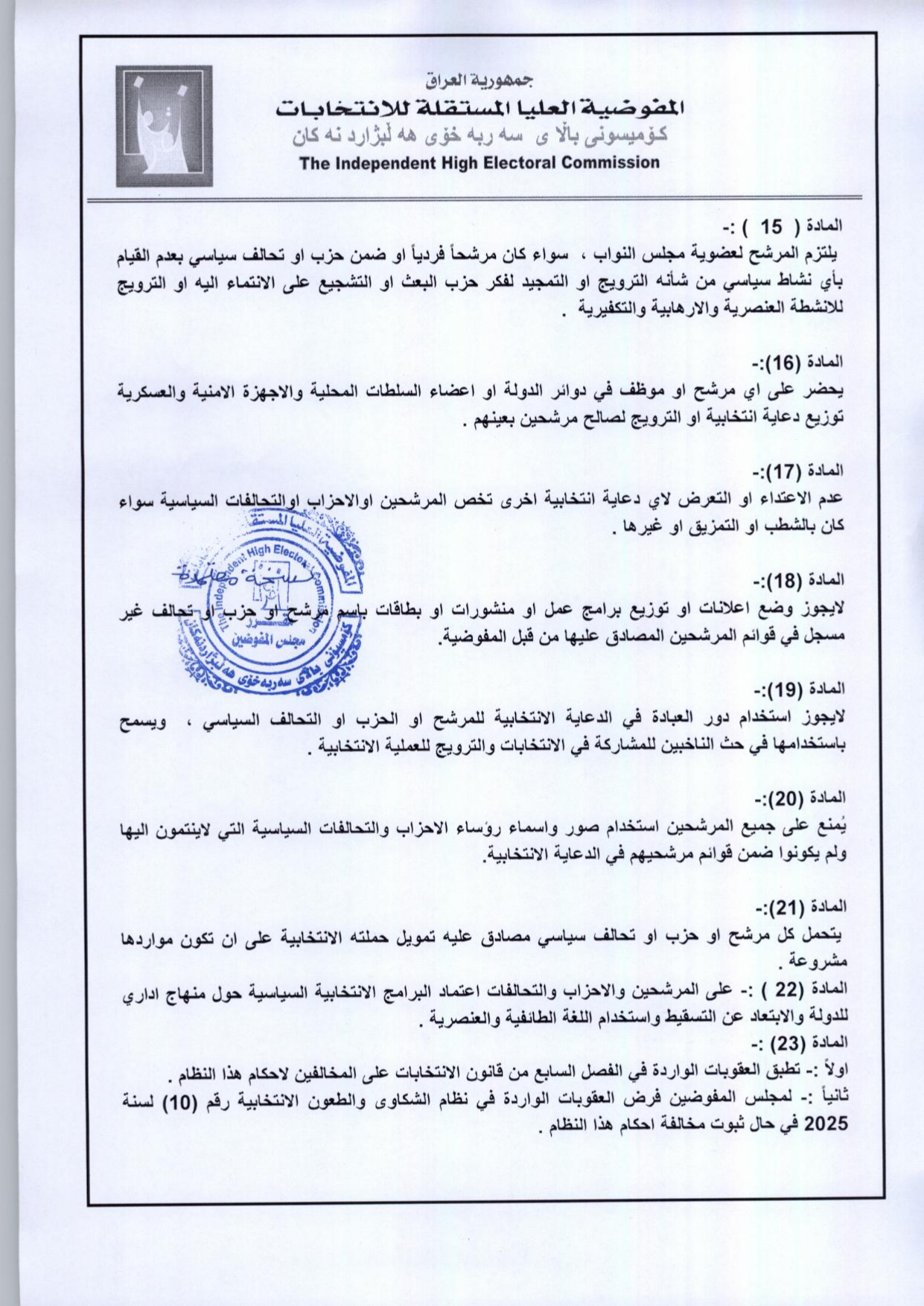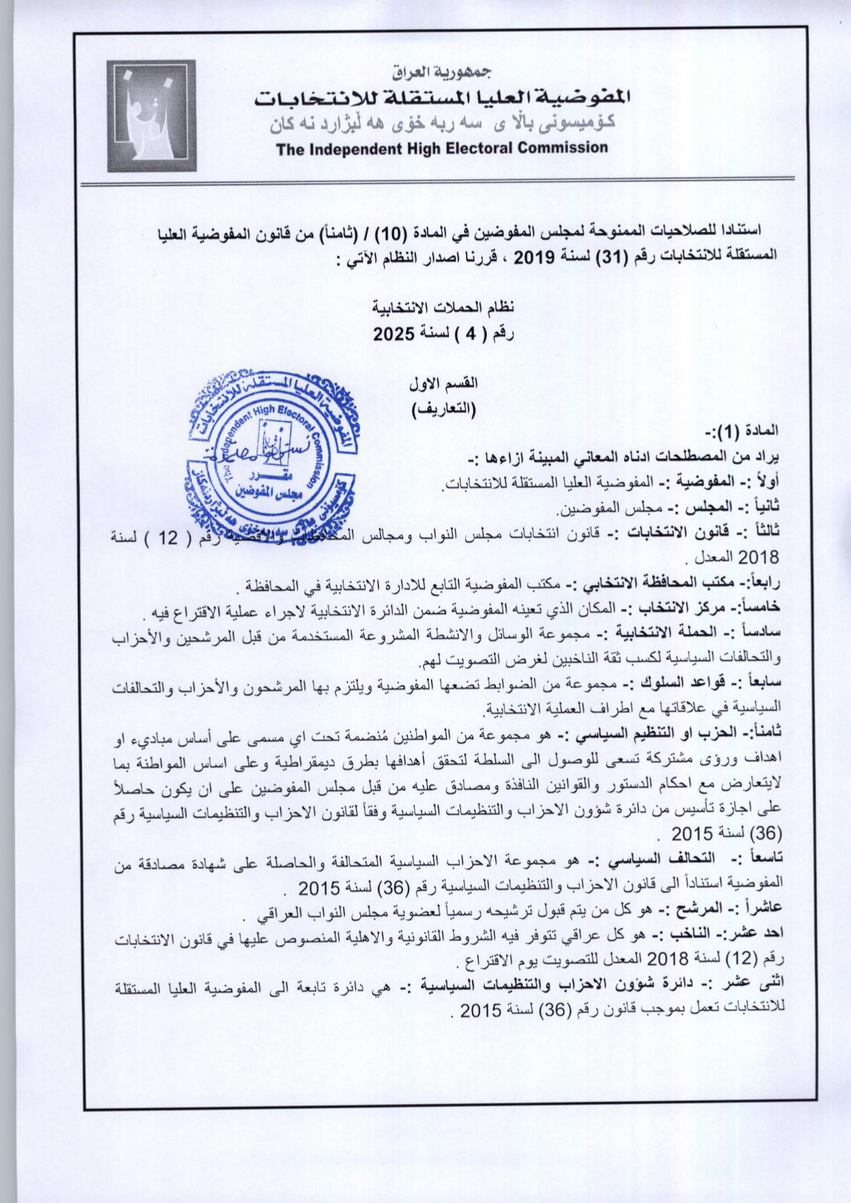 وثائق: المفوضية تنشر نظام الحملات الانتخابية رقم 4 لسنة 2025 الخاص بالمرشحين والقوائم