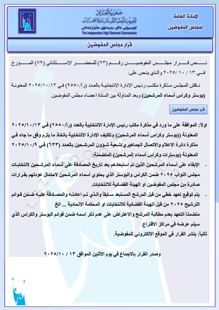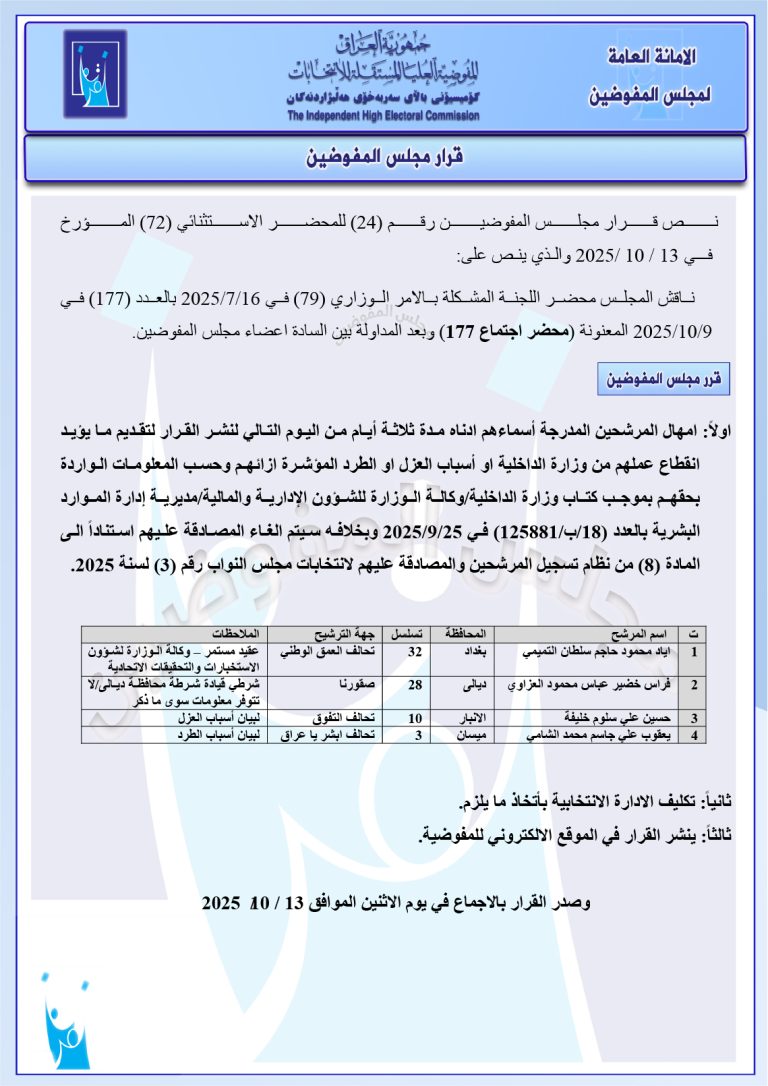 وثائق: مجلس المفوضين يُصدر قرارات جديدة تتعلق بمجموعة من المرشحين للانتخابات المقبلة