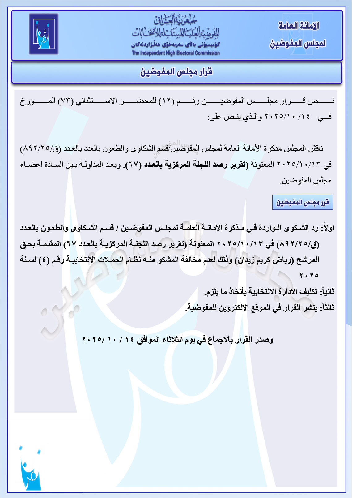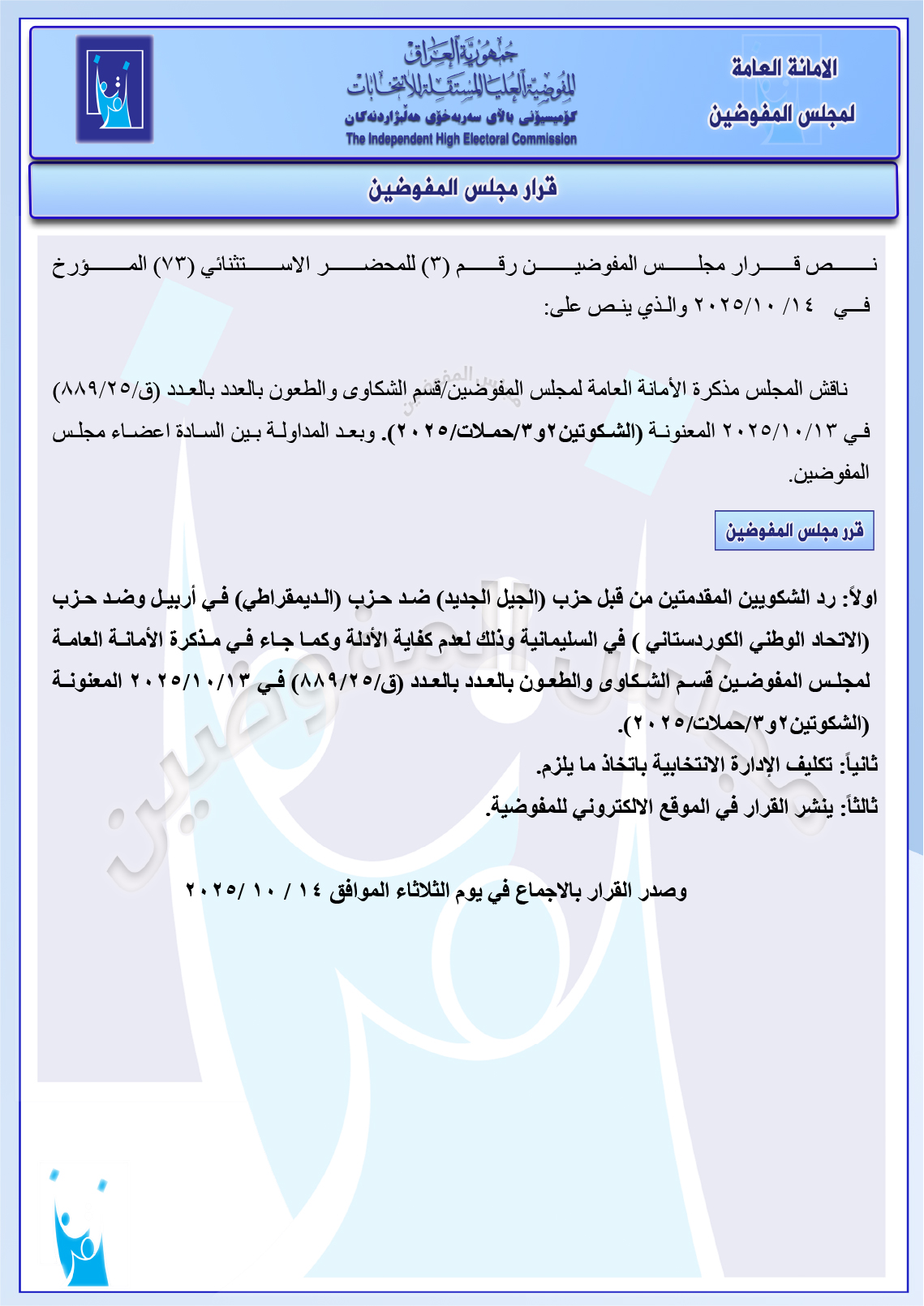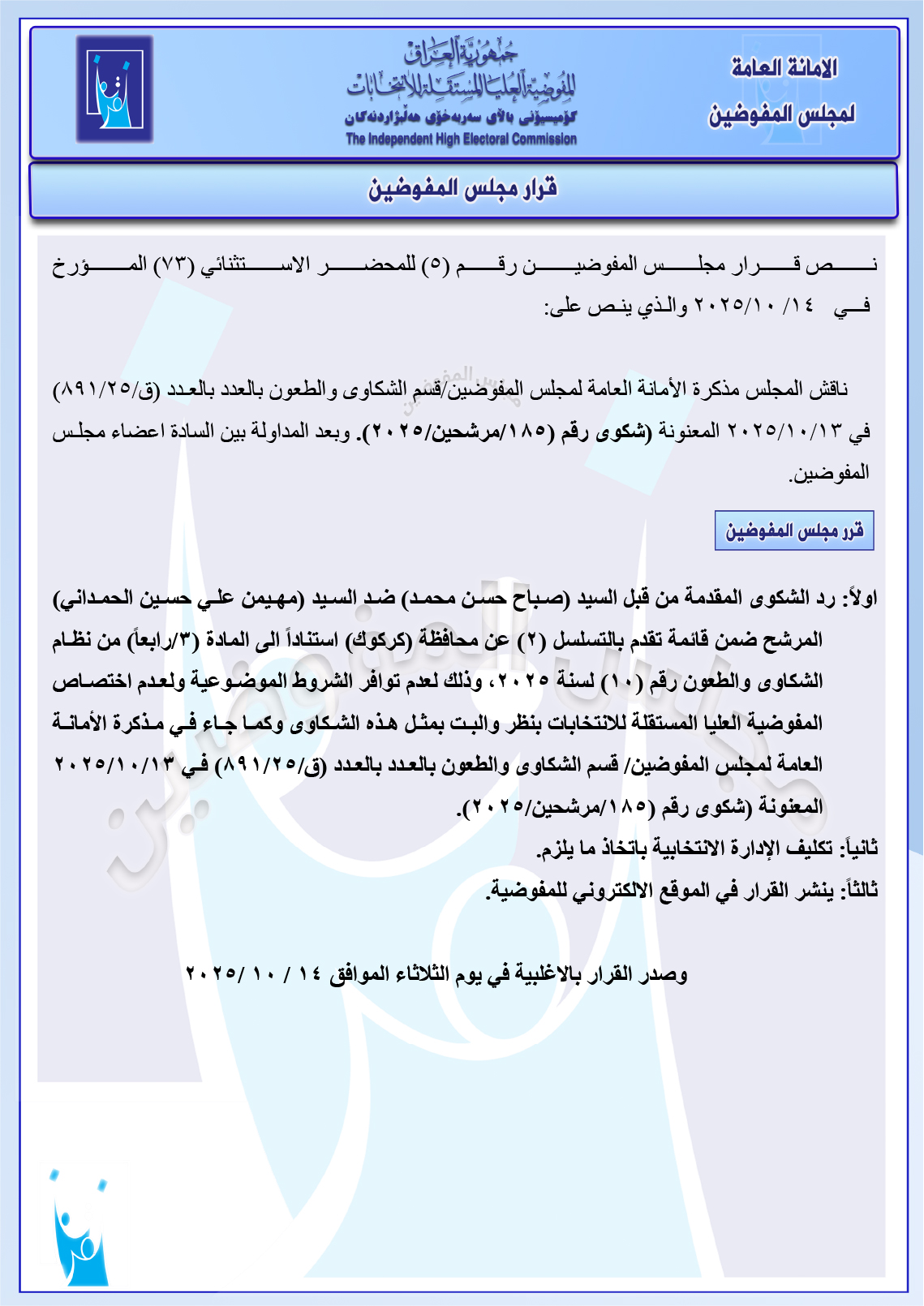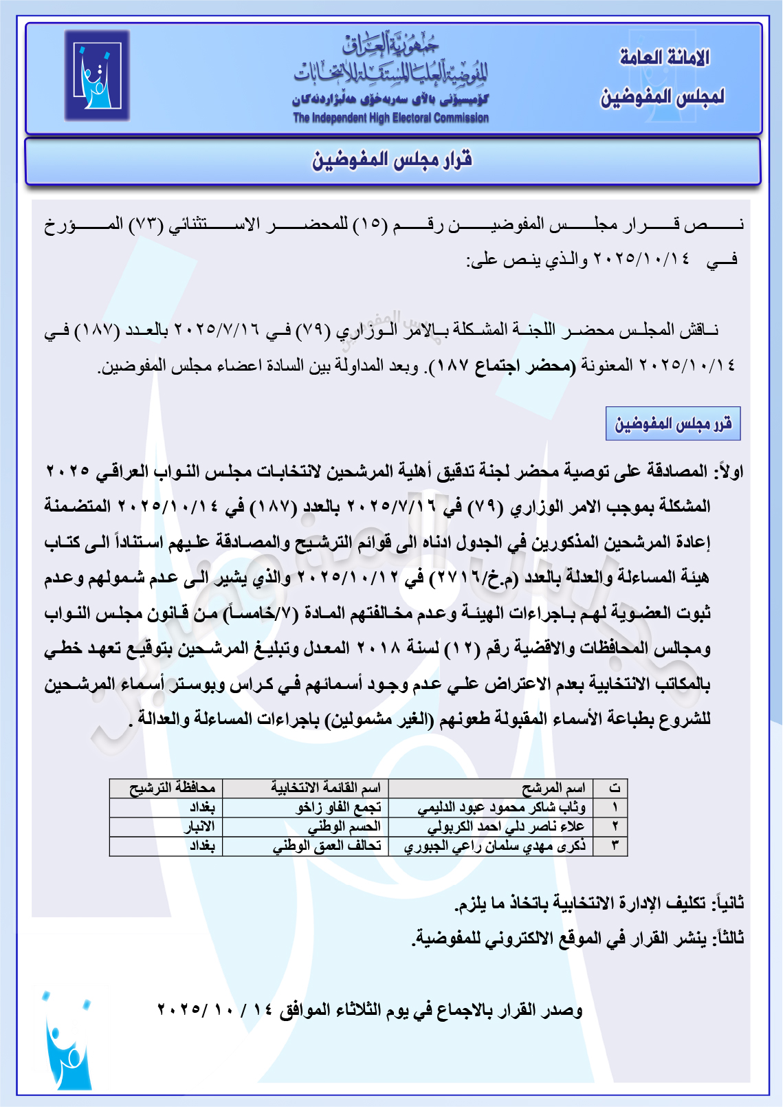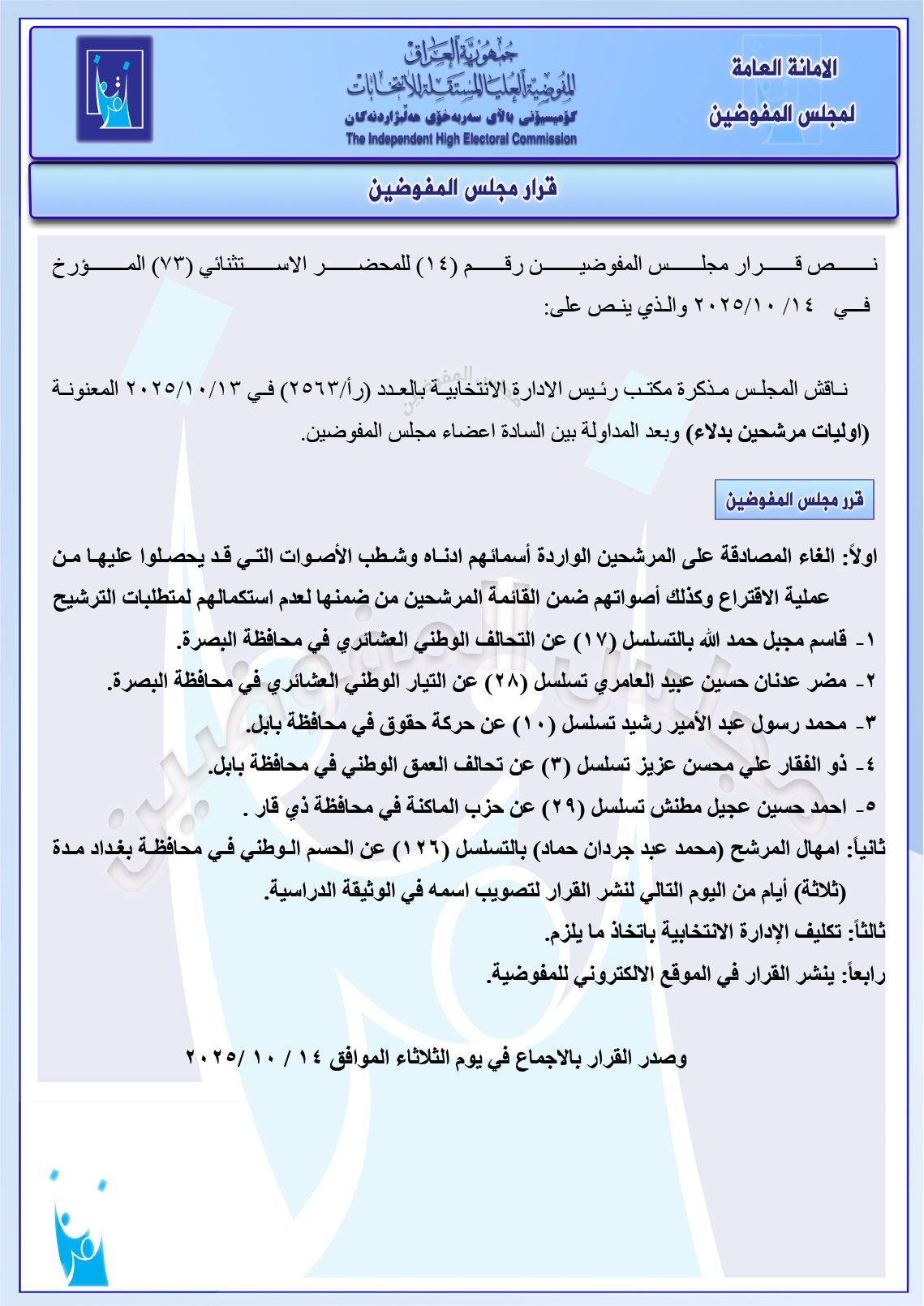 وثائق: مجلس المفوضين يصدر قرارات جديدة بشأن مجموعة من المرشحين للانتخابات المقبلة