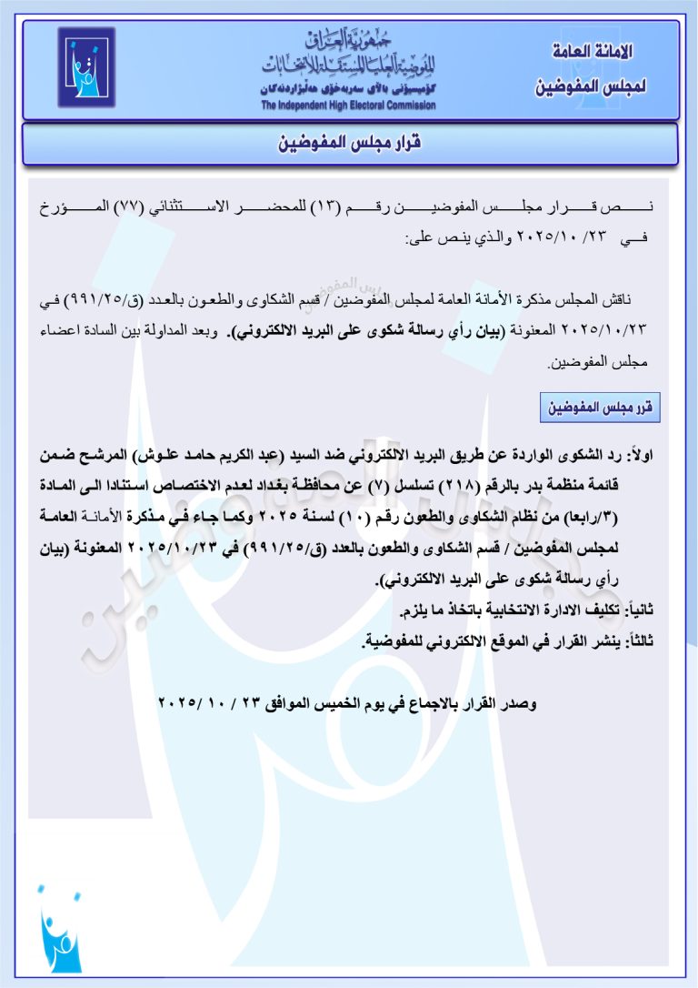 ووفقاً للوثائق التي حصلت عليها شبكة أخبار الانتخابات العراقية، فأن القرارات تتضمن المصادقة وإلغاء المصادقة وإعادة 6 مرشحين مع رد طلب إعادة مرشح آخر.