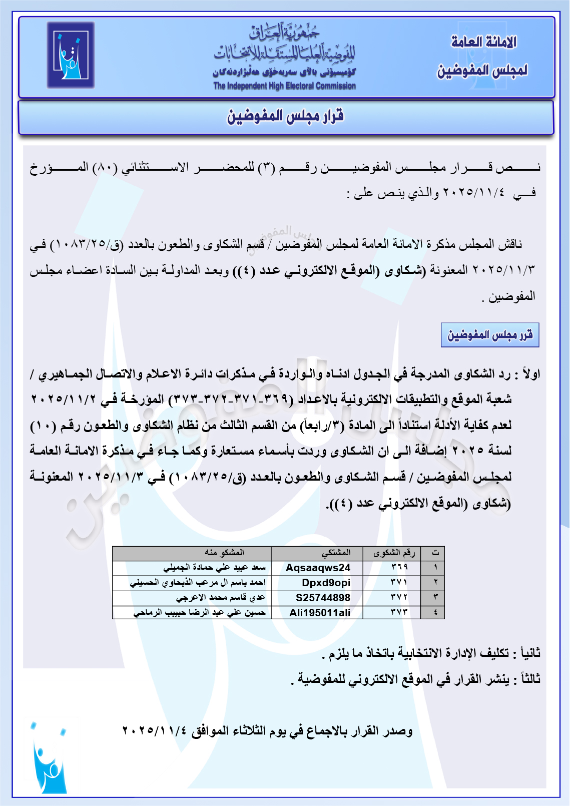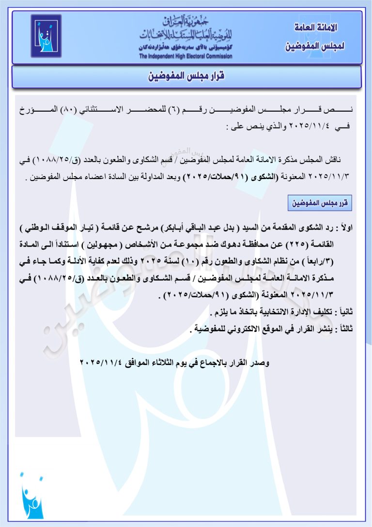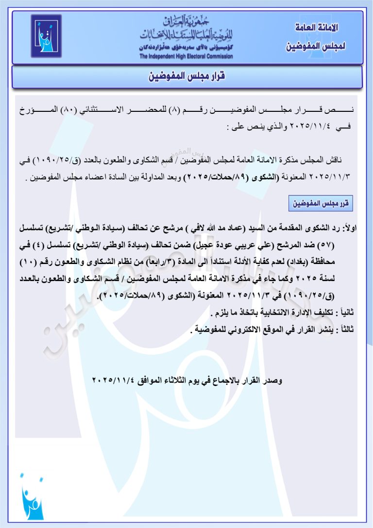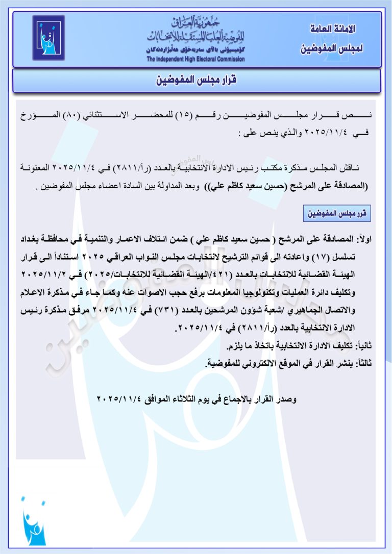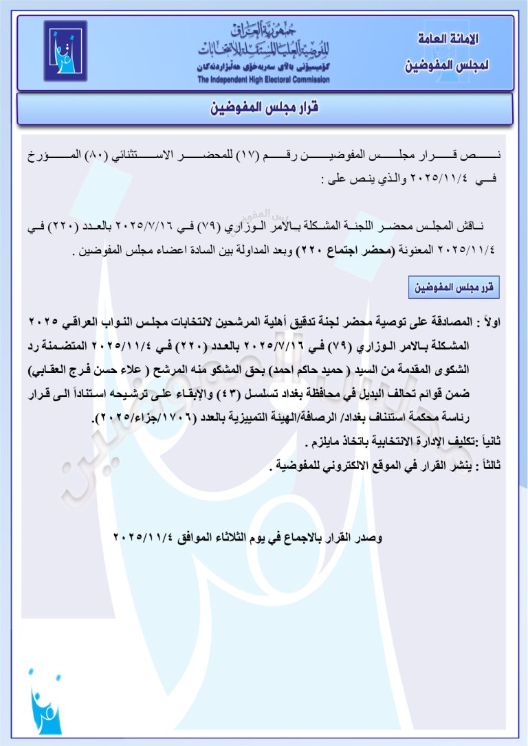 وثائق: قرارات جديدة لمجلس المفوضين تتضمن إعادة مرشحين للانتخابات ورد شكاوى بحق آخرين