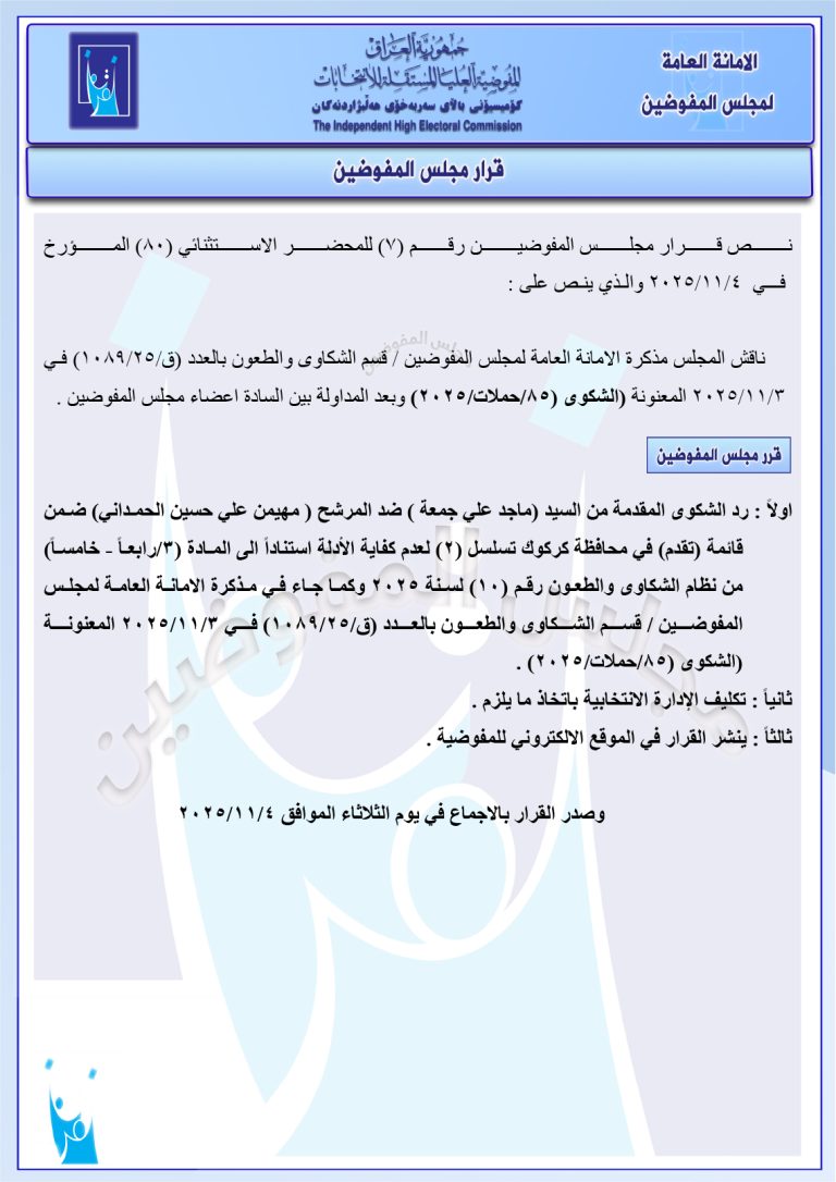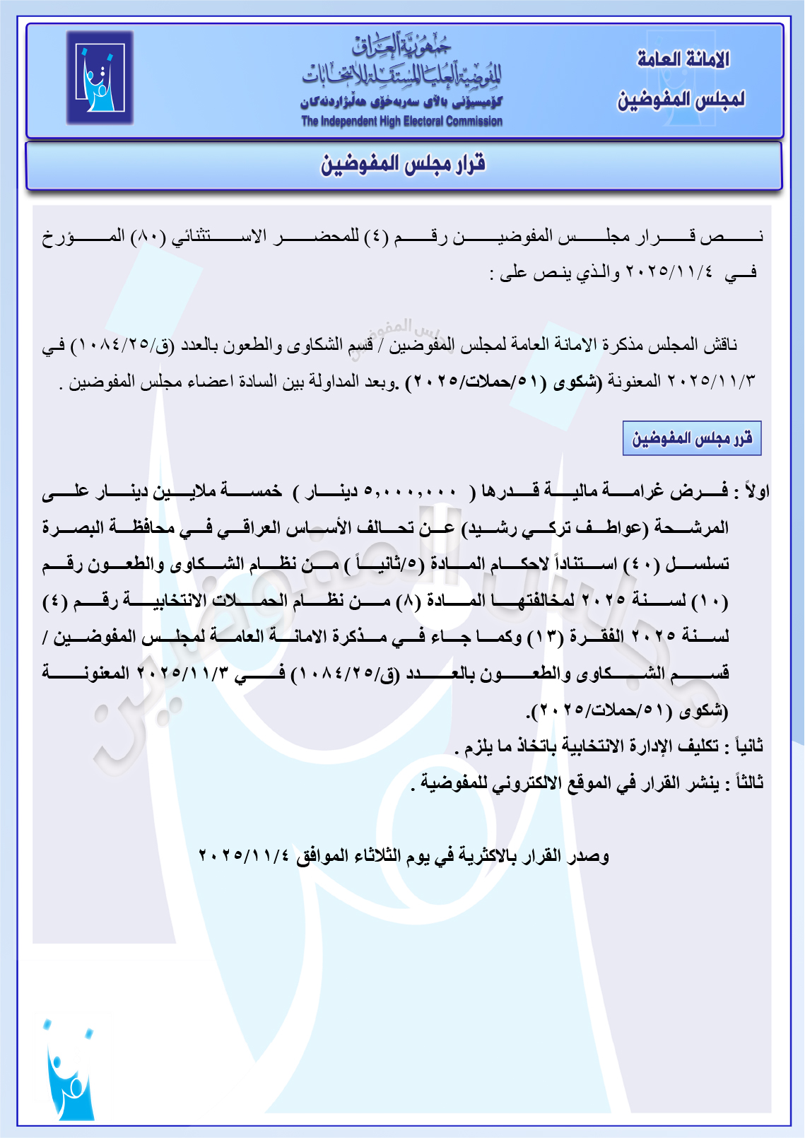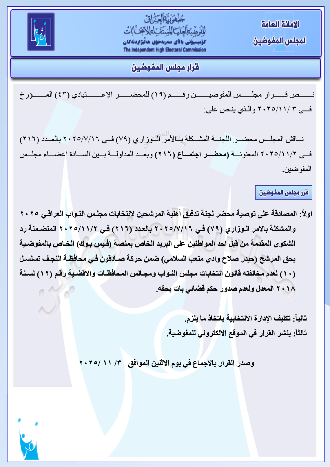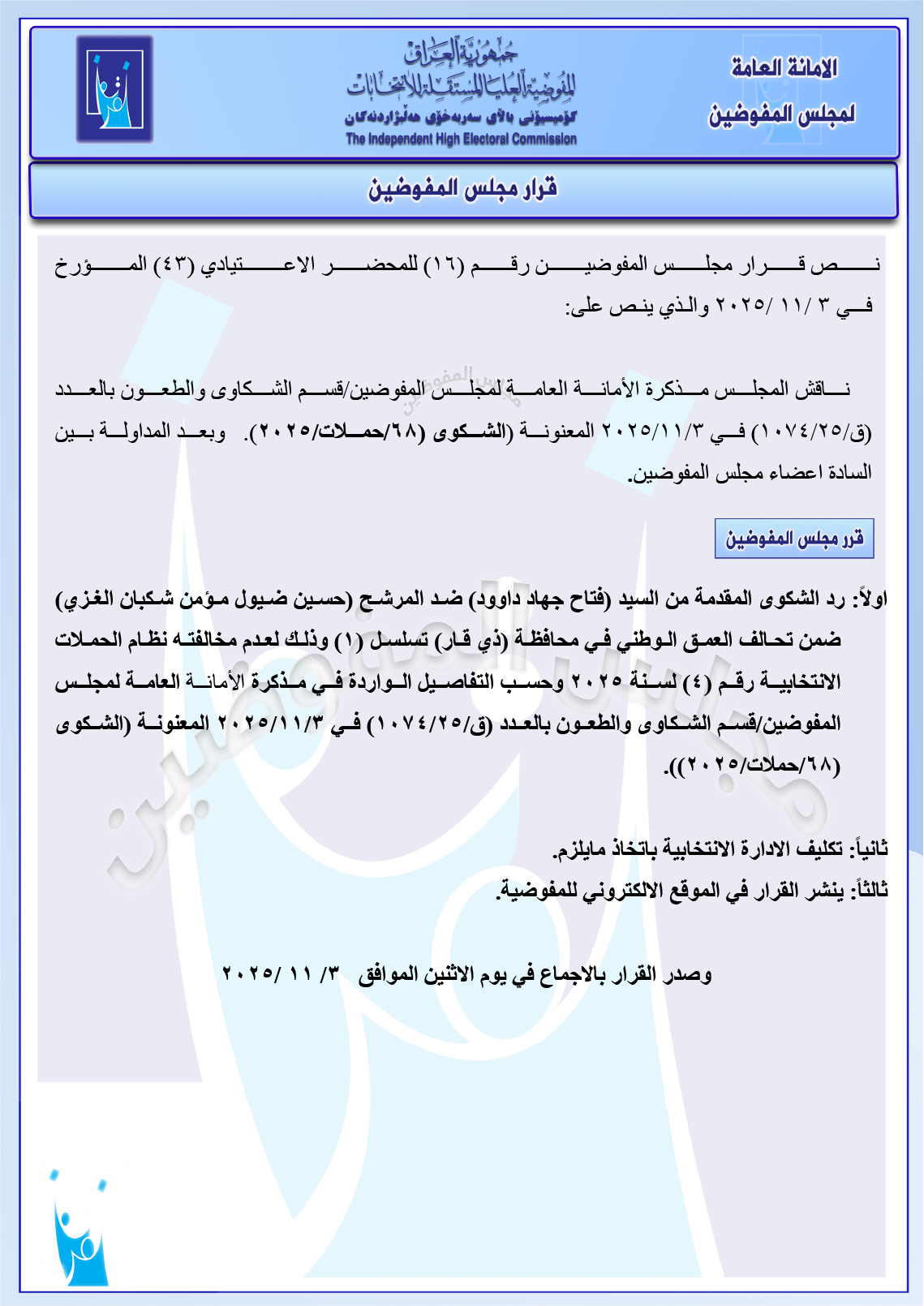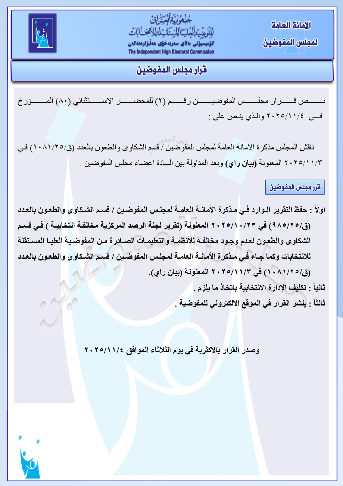 وثائق: قرارات جديدة لمجلس المفوضين تتضمن إعادة مرشحين للانتخابات ورد شكاوى بحق آخرين
